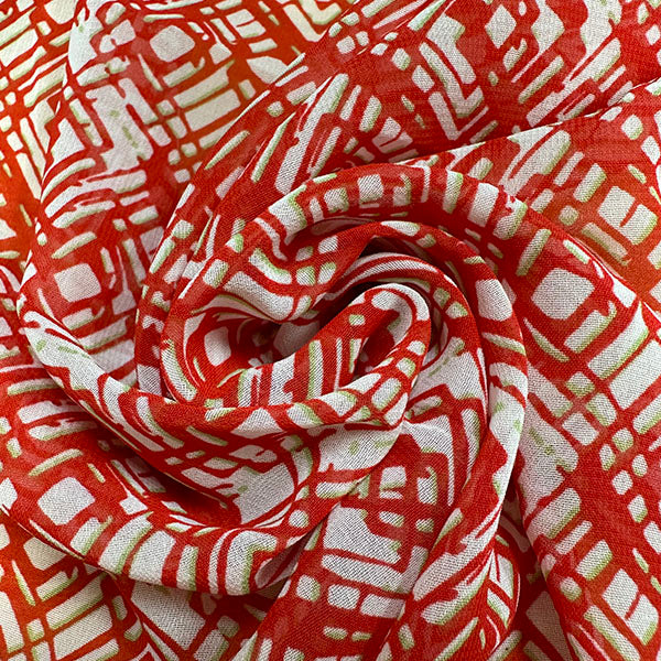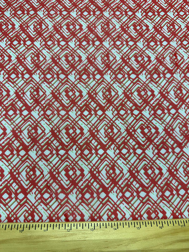 Red Diamond Poly Print Chiffon Fabric