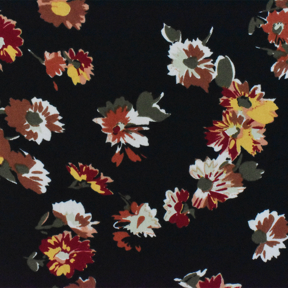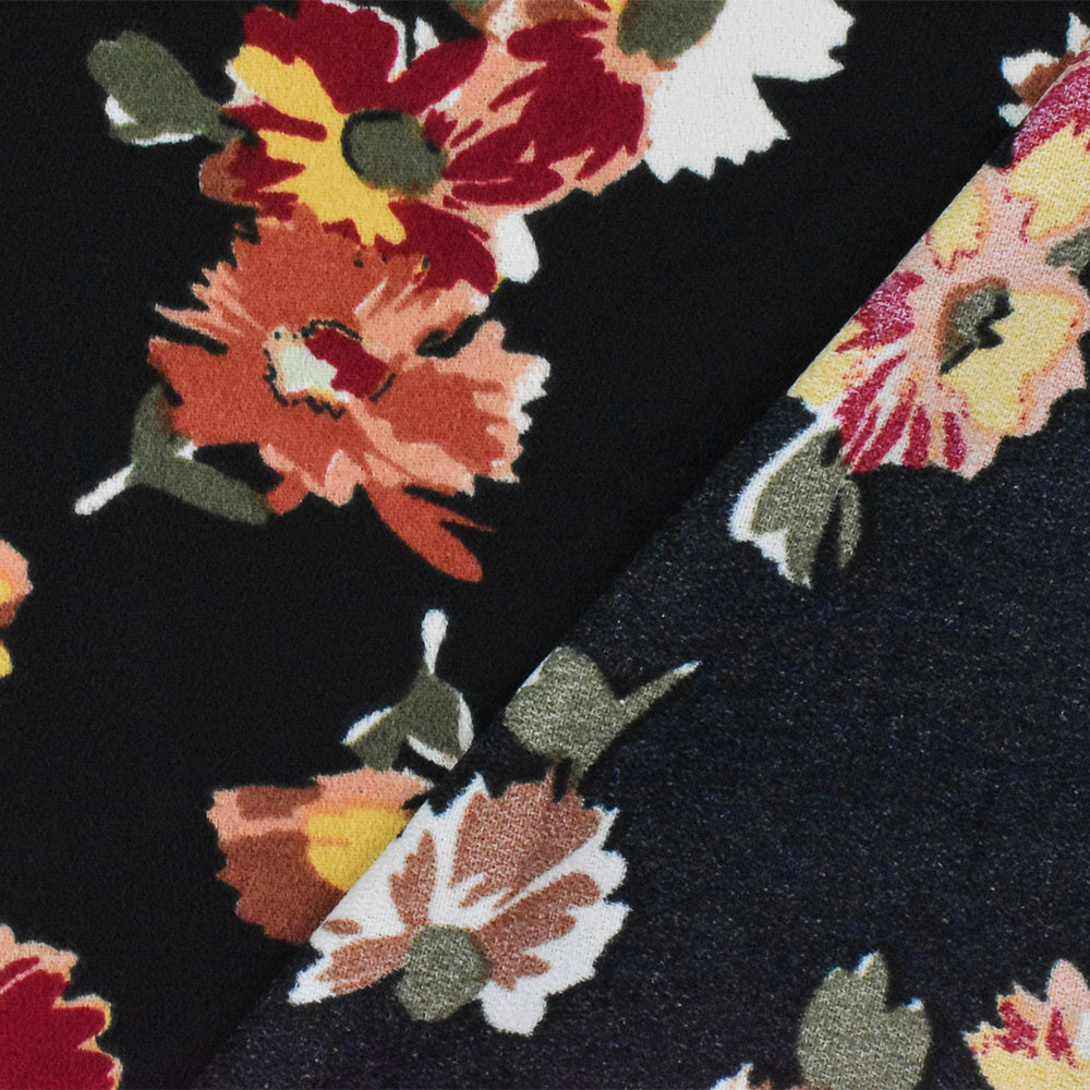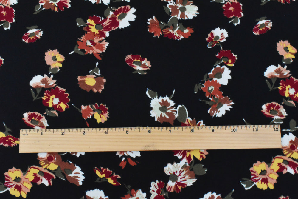 Black-Red-Multi Floral Printed Poly Momie Woven Fabric
