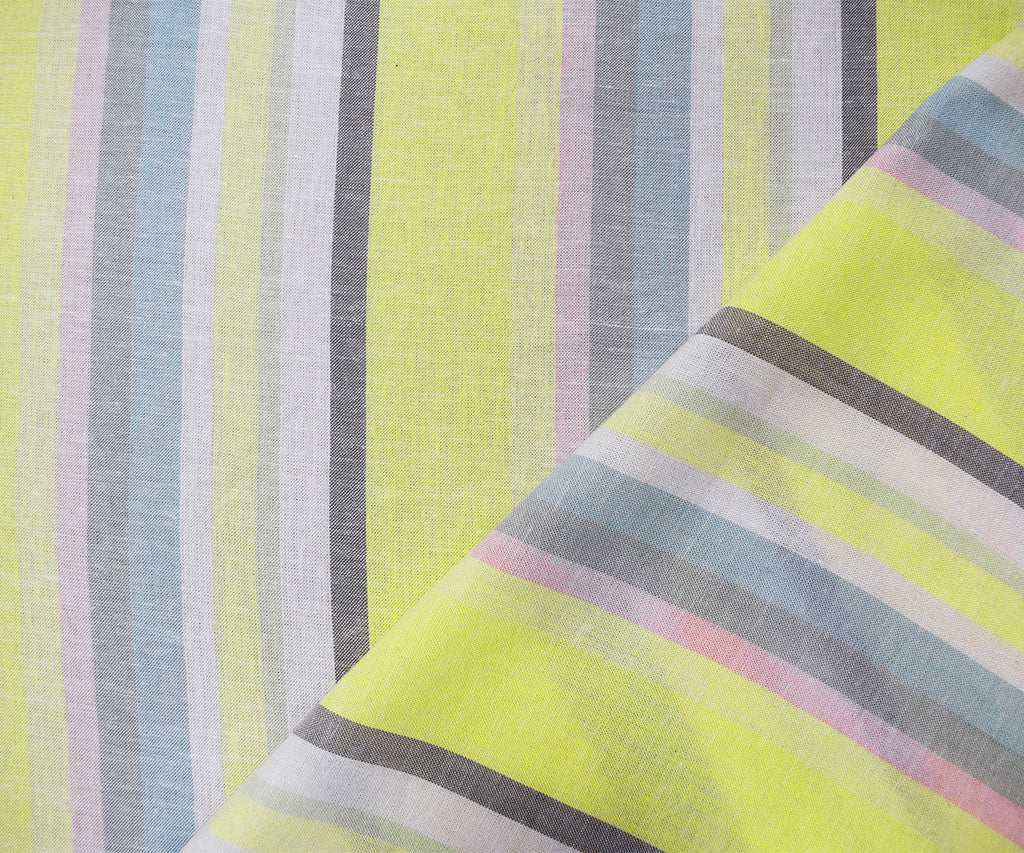 Light Yellow-Pink-Multi Cotton Famous Maker Vertical Stripe Shirting Fabric