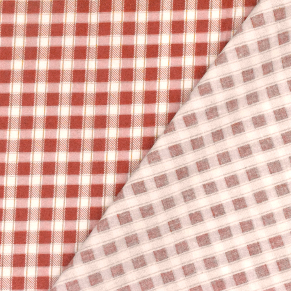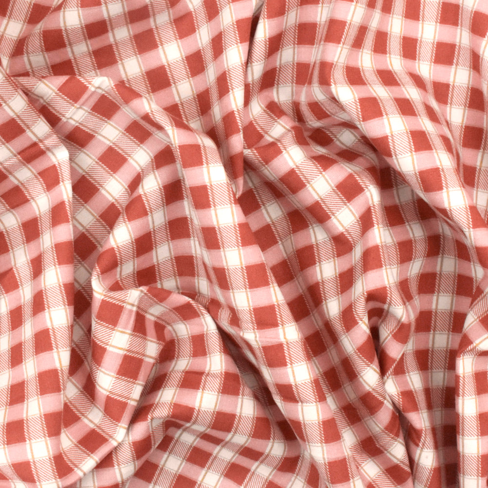 Soft Red-Pink-Multi Plaid Print Stretch Cotton Broadcloth Woven Fabric