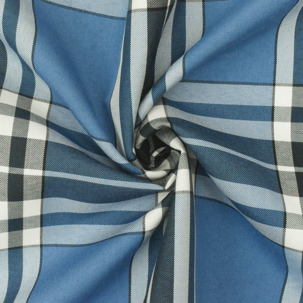 Student Blue-Black-White Plaid Poly Madras Woven Fabric