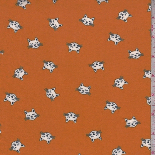 Orange Kitty Double Brushed Jersey Knit Fabric