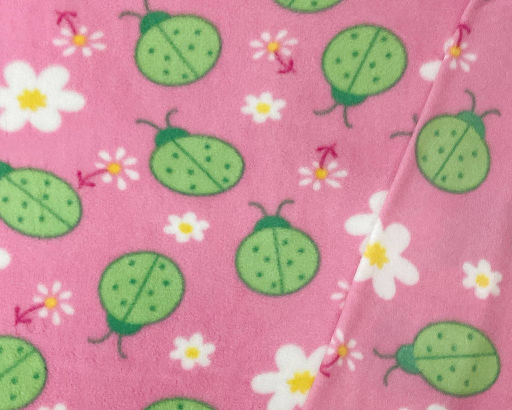 Pink-Green-Multi Polyester Ladybug Floral Printed Polar Fleece Knit Fabric