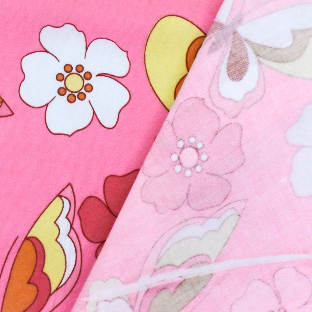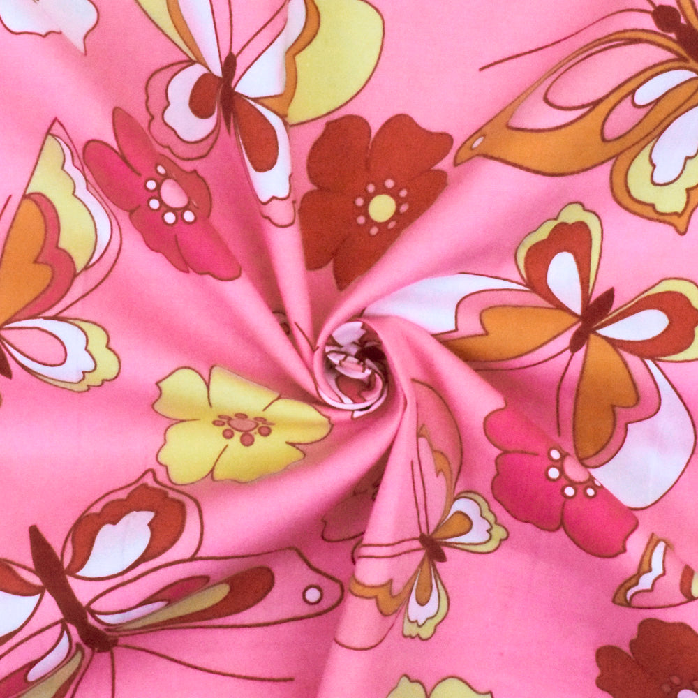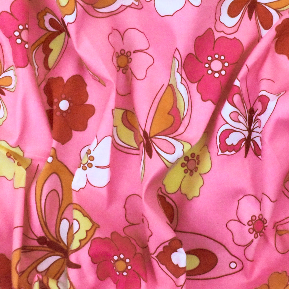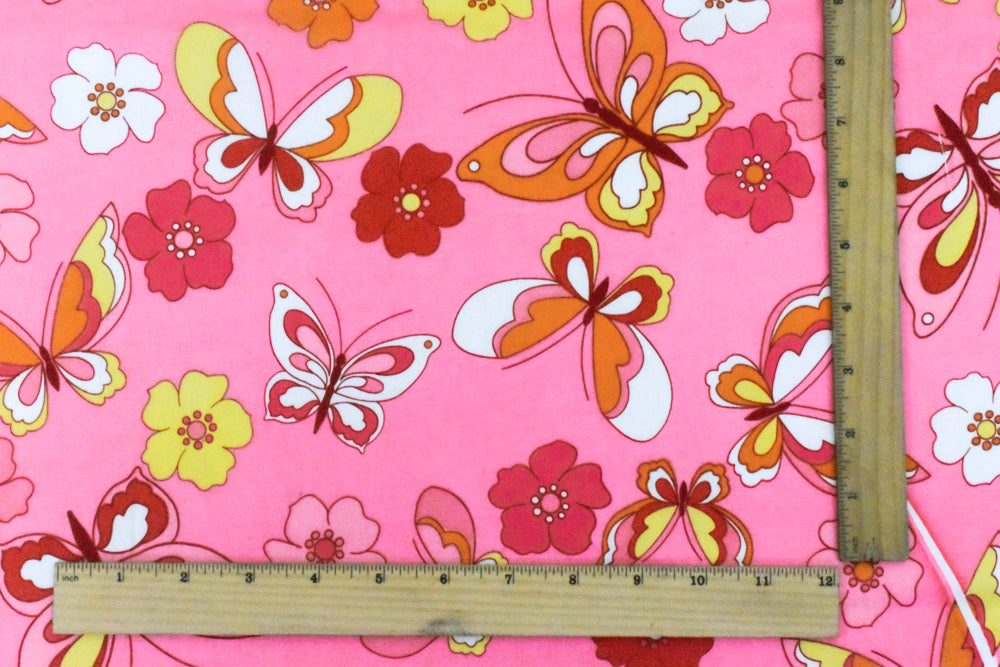 Pink-Multi Floral Butterfly Print Stretch Cotton Poplin Woven Fabric
