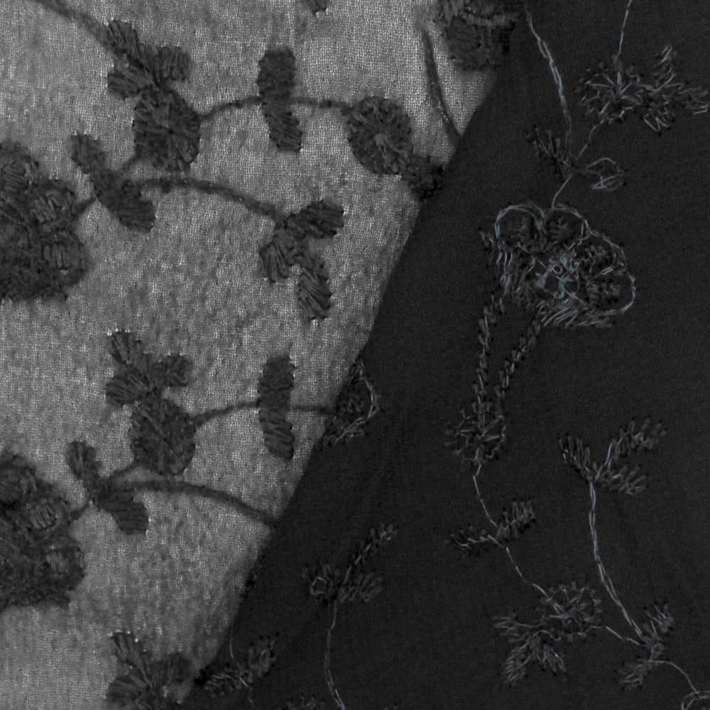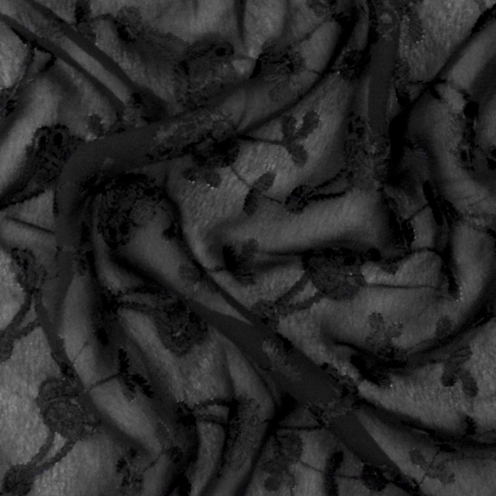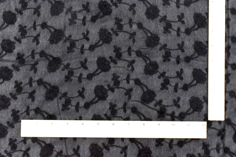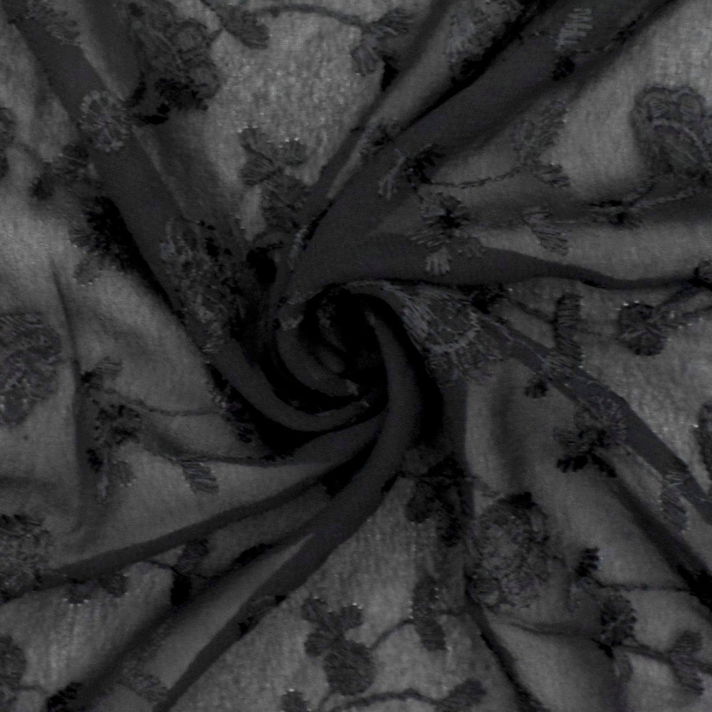 Classic Black Floral Embroidered Rayon Chiffon Woven Fabric