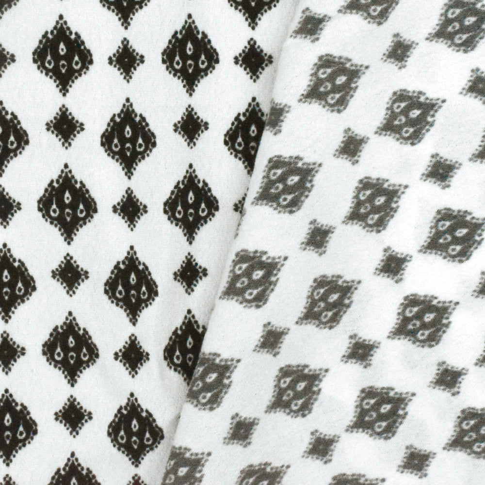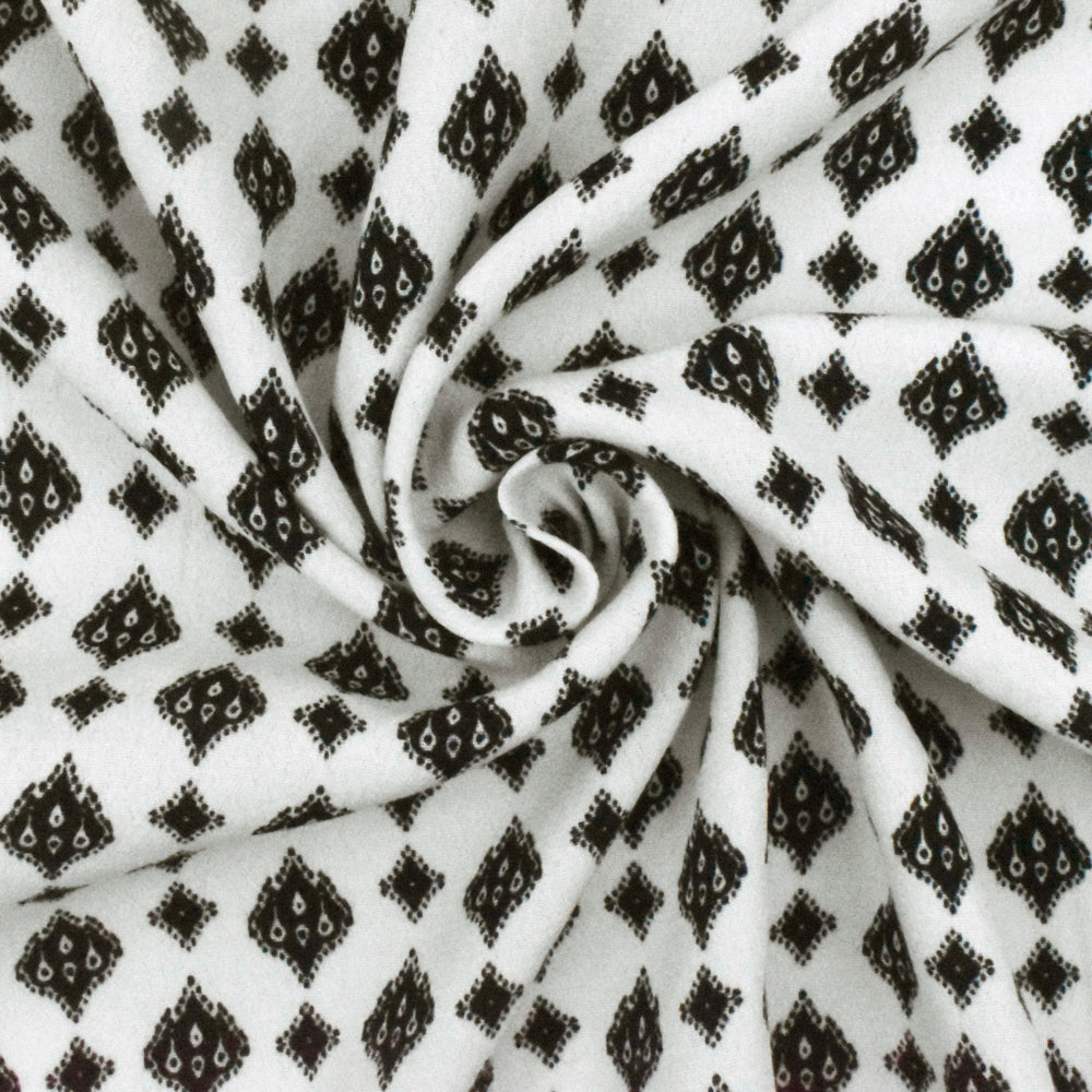 Ivory-Black Ogee Diamond Printed Rayon Crepe Faille Woven Fabric