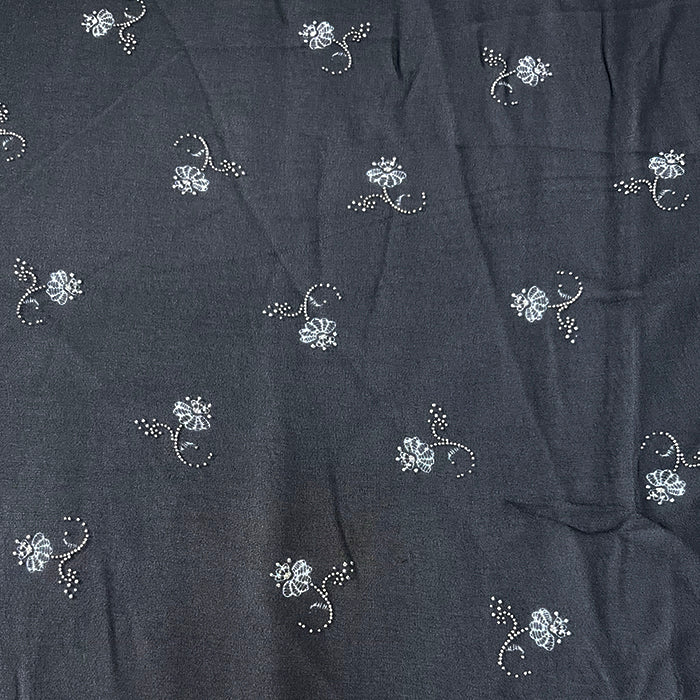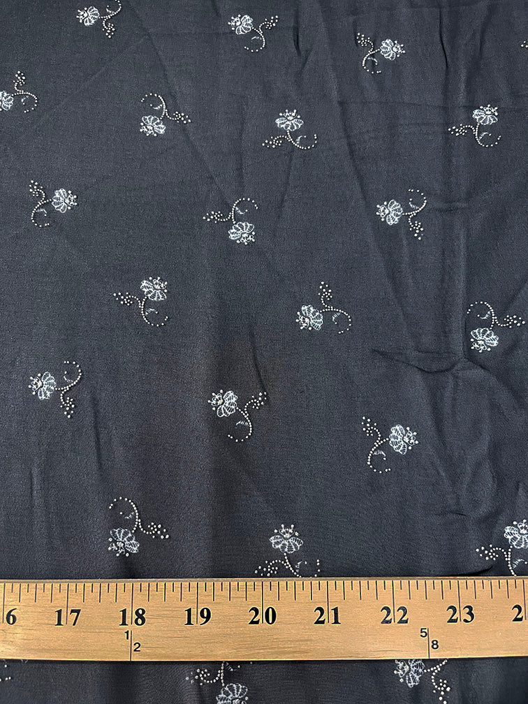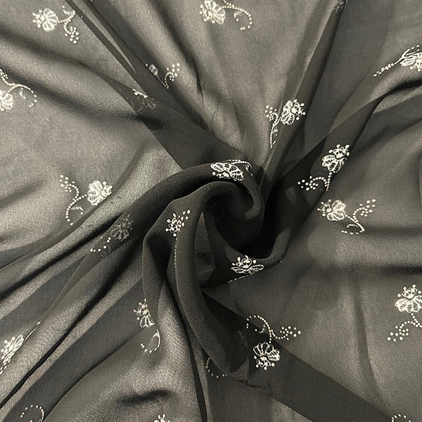 White and Beige Flocked Floral Poly Print Chiffon Fabric