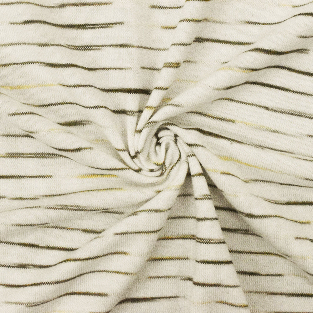 Taupe Olive-Ivory-Beige Stripe Stretch Jersey Knit Fabric