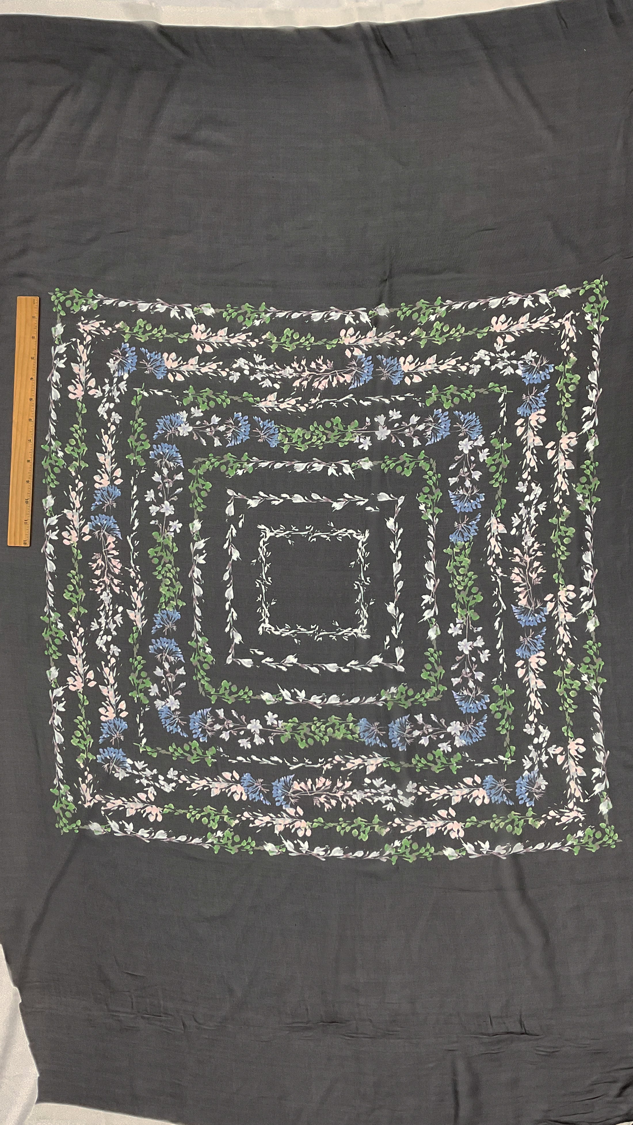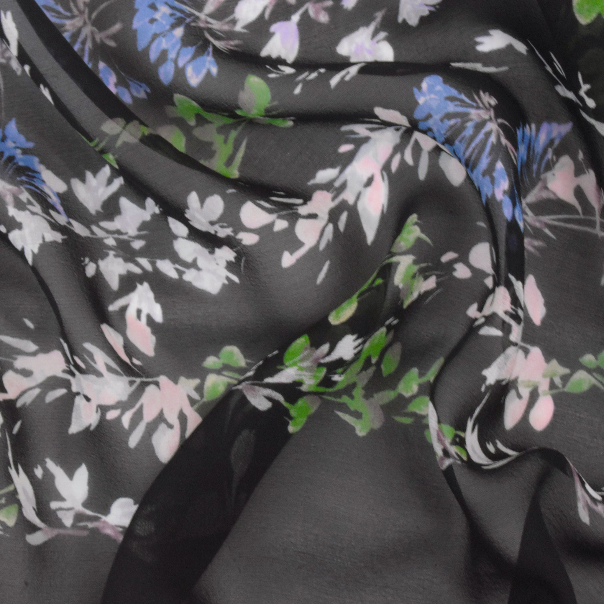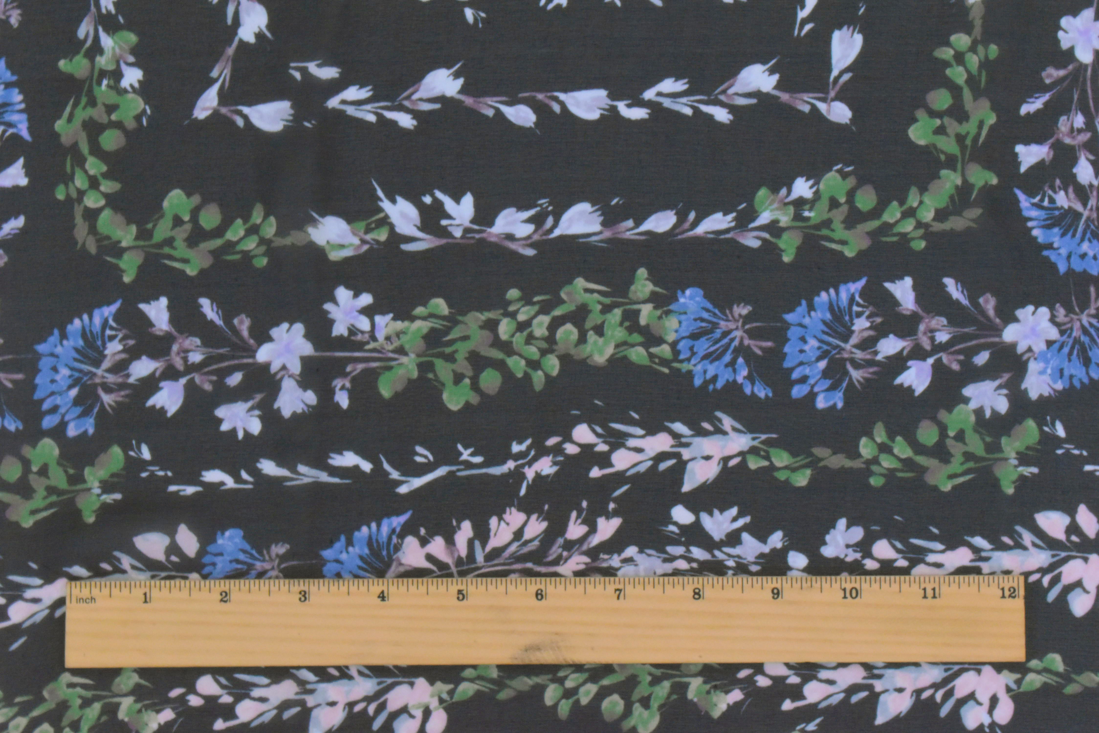 Black-Blue-Multi Floral Border Frame Panel Printed Chiffon Fabric