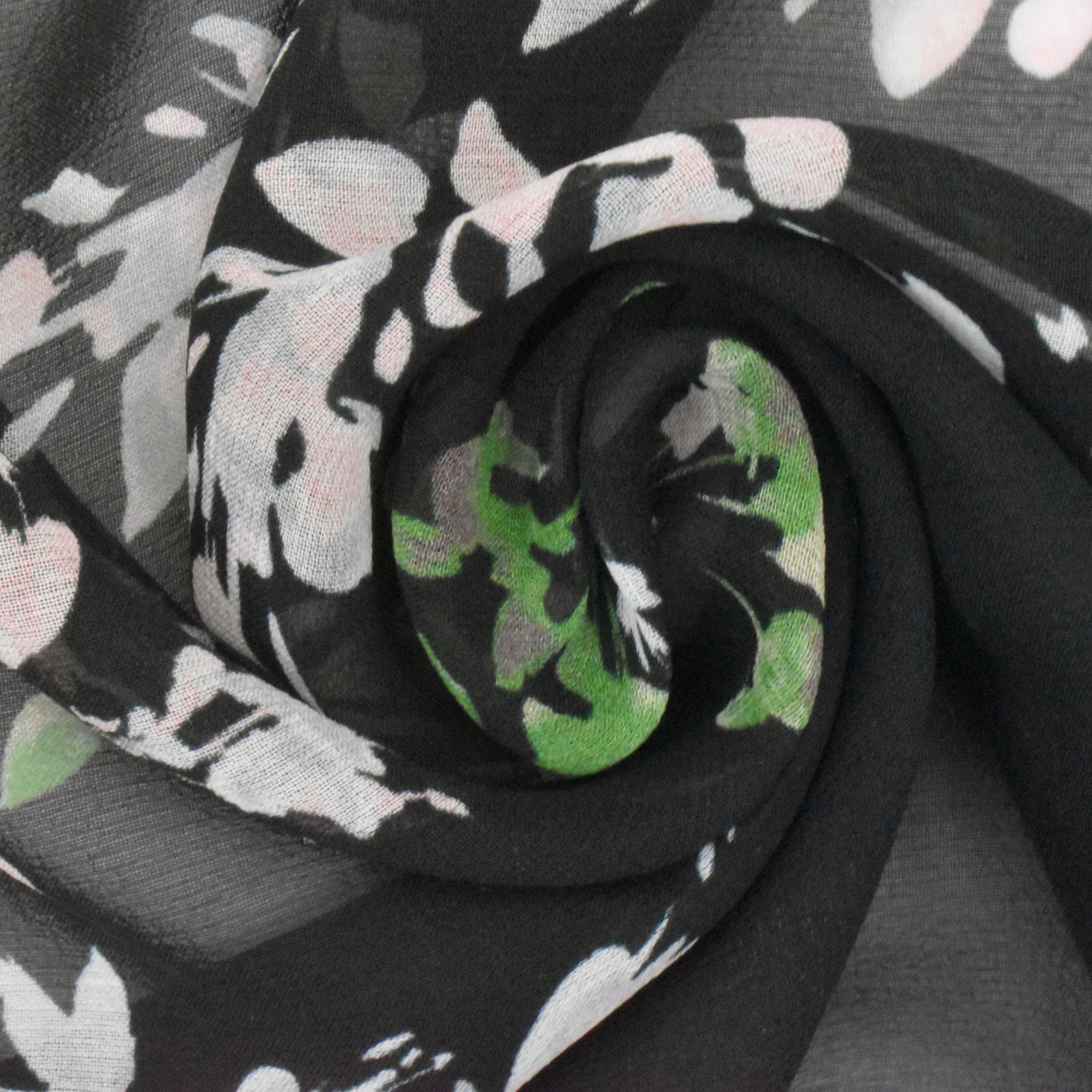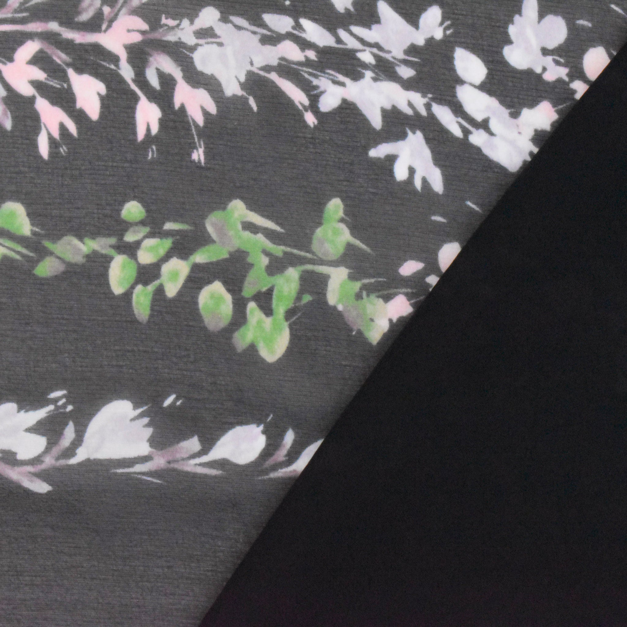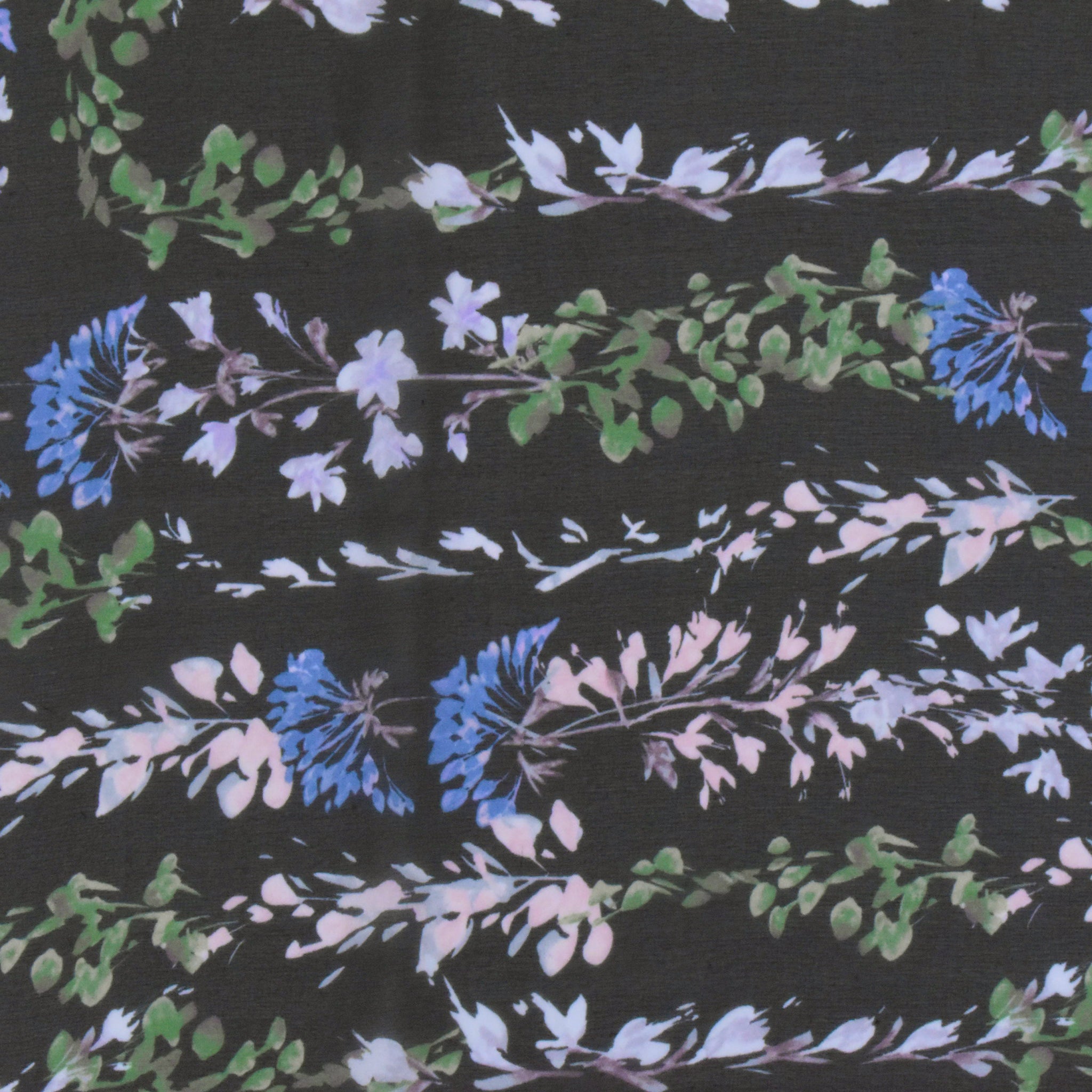 Black-Blue-Multi Floral Border Frame Panel Printed Chiffon Fabric