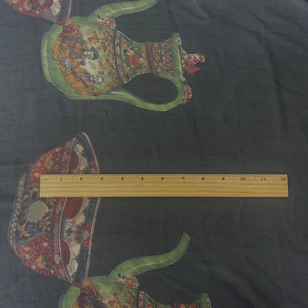 Black-Green-Multi Tea Set Printed Chiffon Panel Woven Fabric