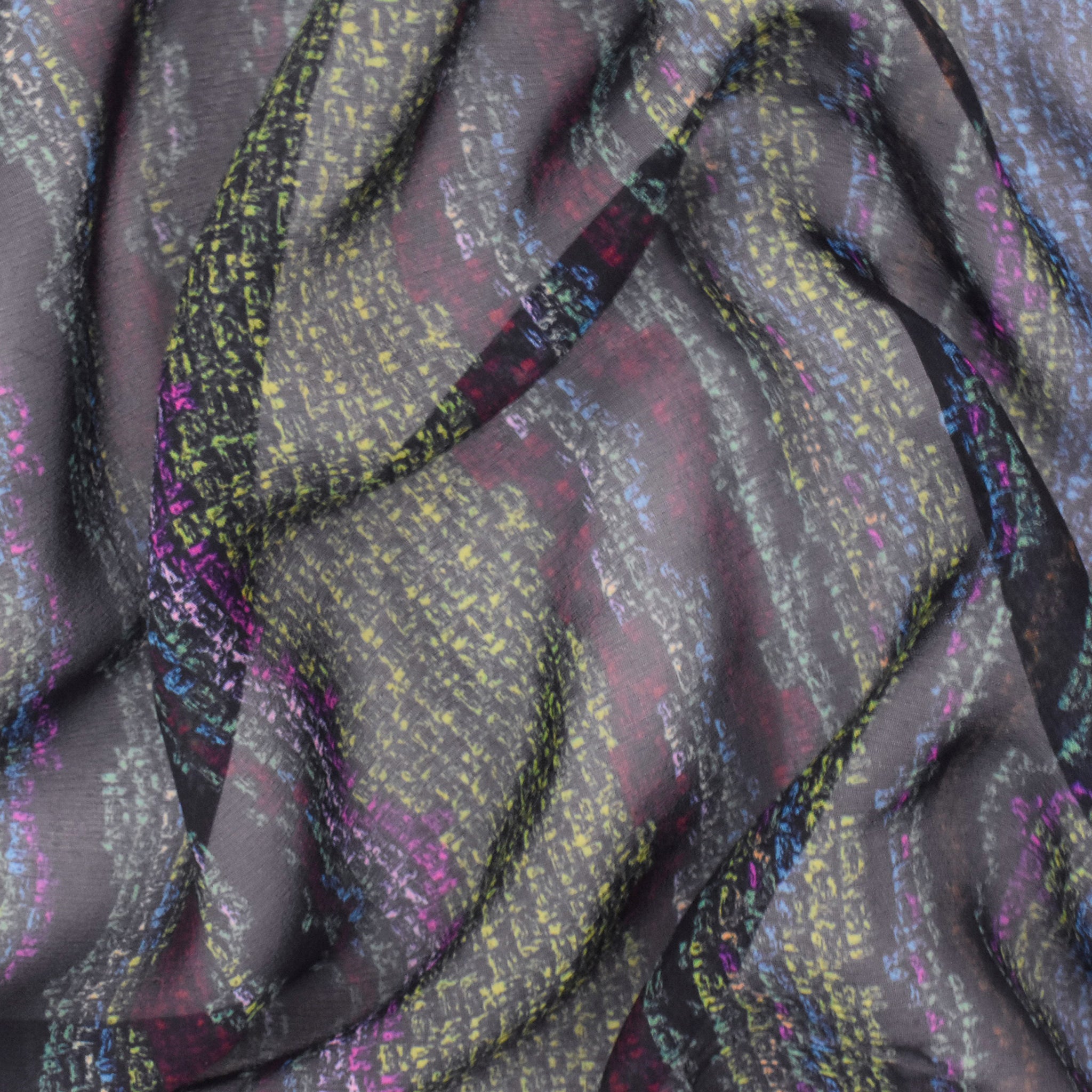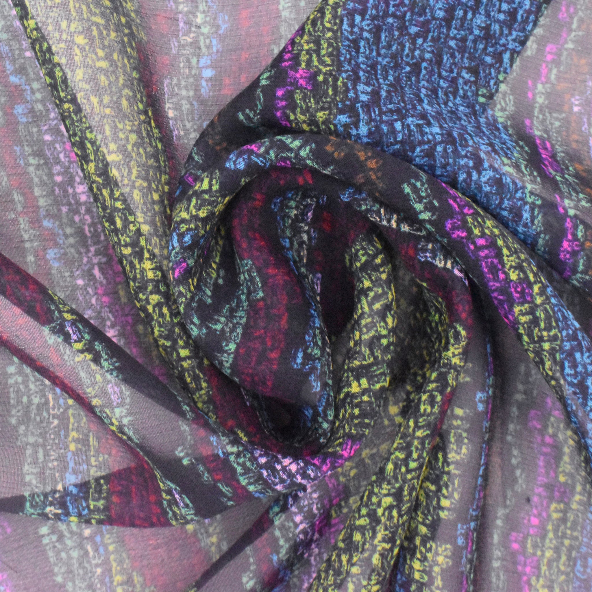 Lime-Blue-Multi Digital Texture Printed Silk Chiffon Fabric
