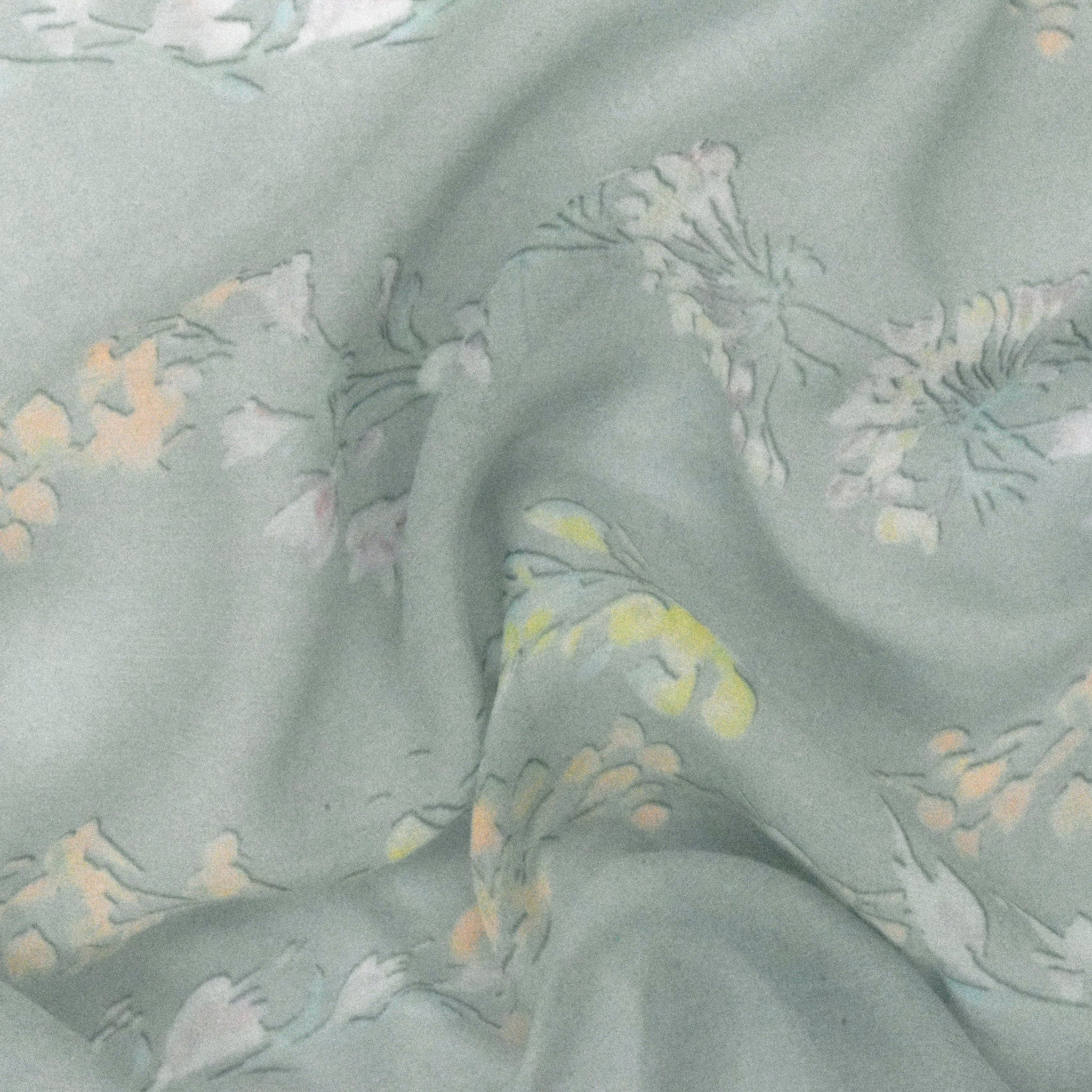 Mist Teal-Orange-Multi Floral Frame Border Printed Silk Chiffon Fabric