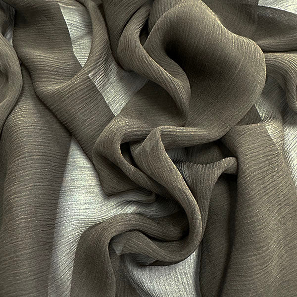 Pale Brown Woven Crinkled Silk Chiffon Fabric