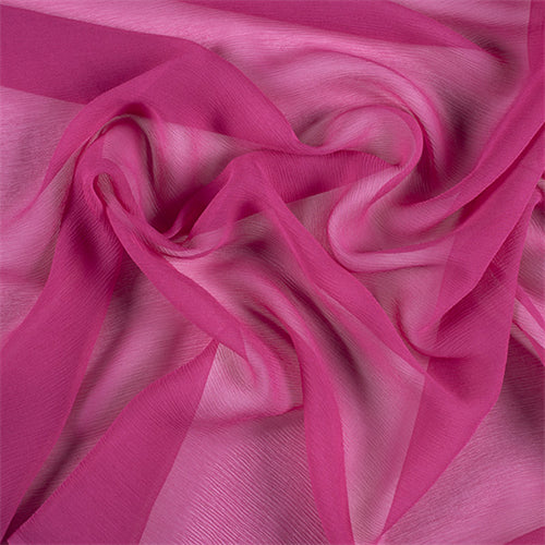 Solid Fuschia Crinkled Silk Chiffon Fabric from our Runway Silk Collection