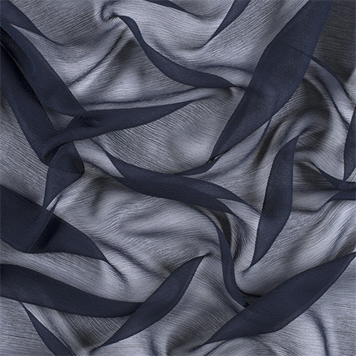 Solid Navy Blue Crinkled Silk Chiffon Fabric from our Runway Silk Collection