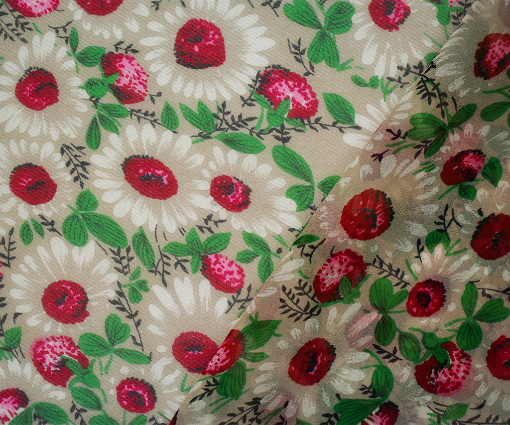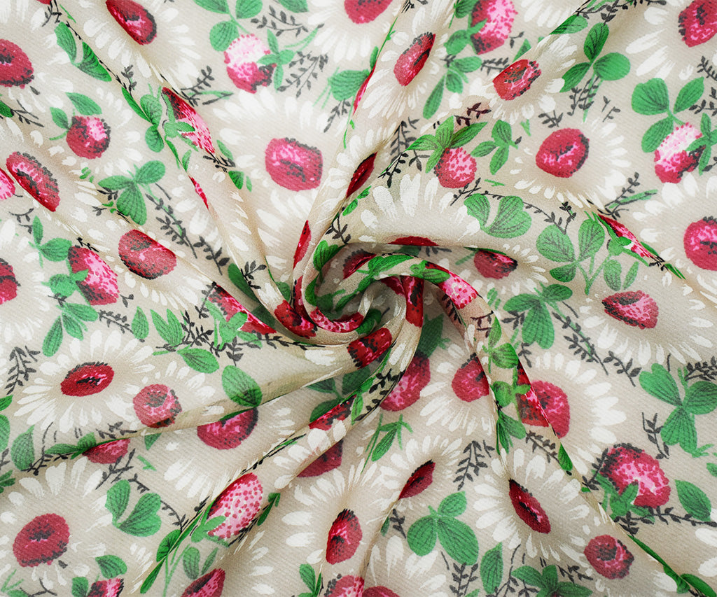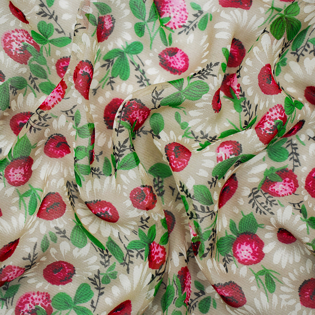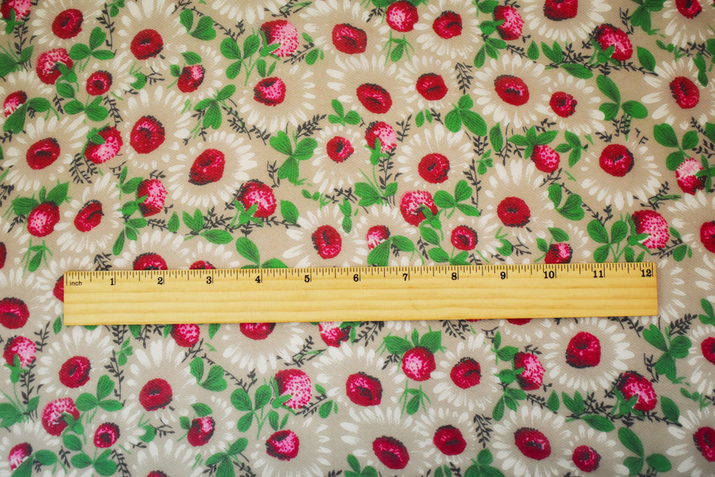 Taupe Beige-Green-Multi Silk Floral Printed Chiffon Woven Fabric
