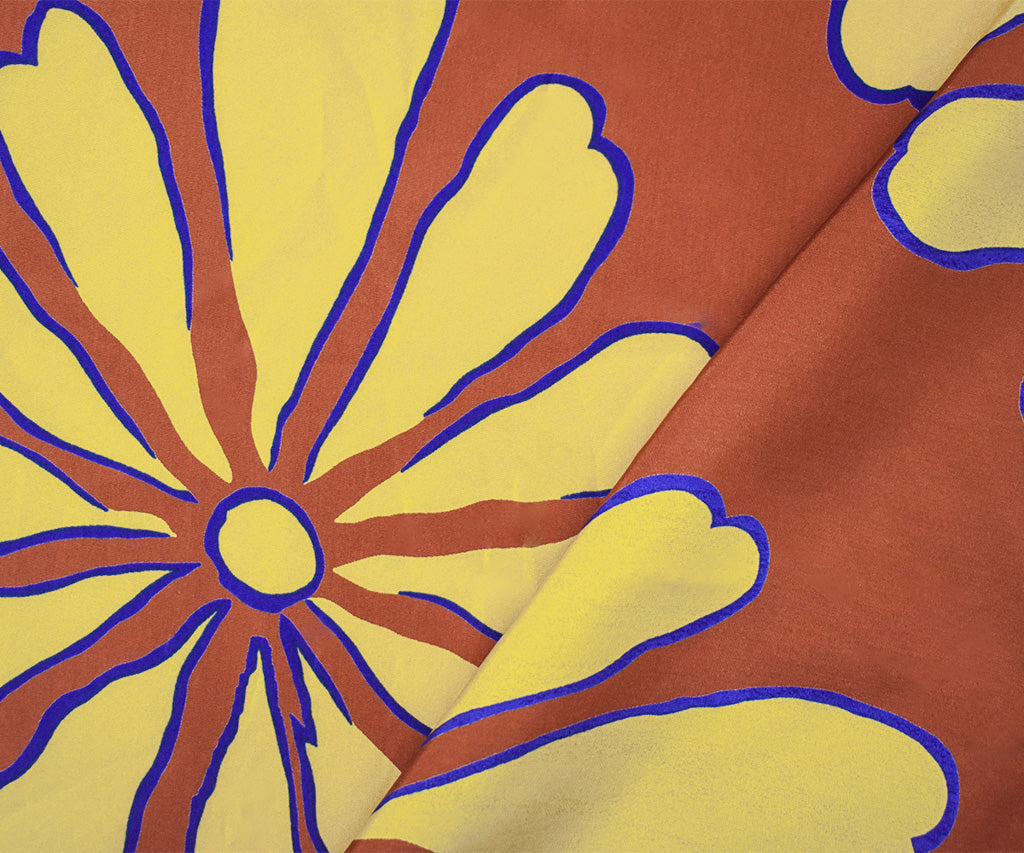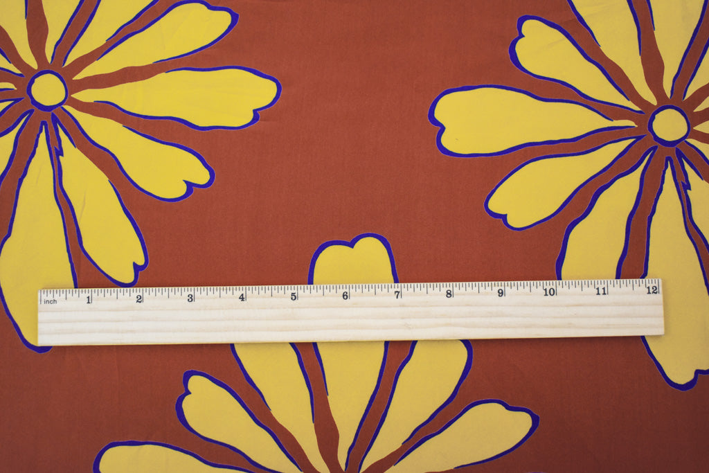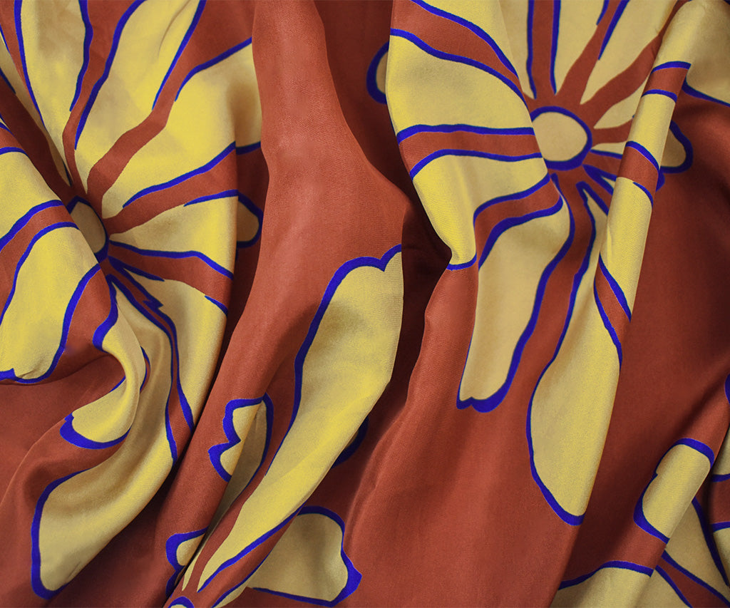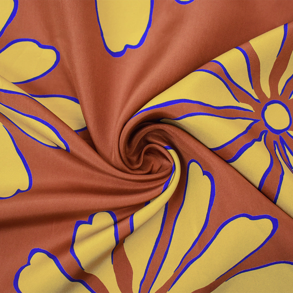 Brown-Beige-Blue Silk Floral Printed Charmeuse Fabric