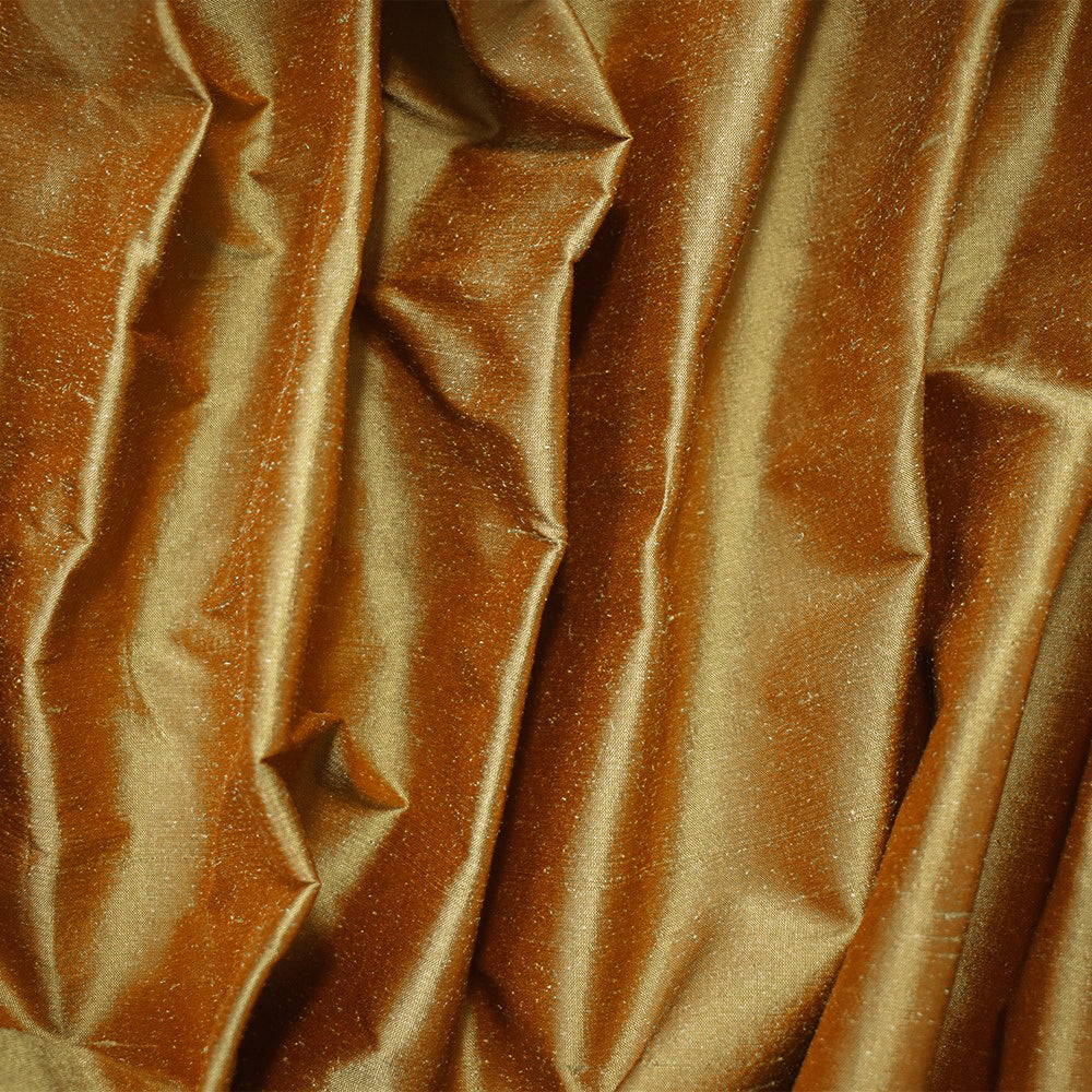 Copper Brown-Beige Silk Iridescent Dupioni Woven Fabric