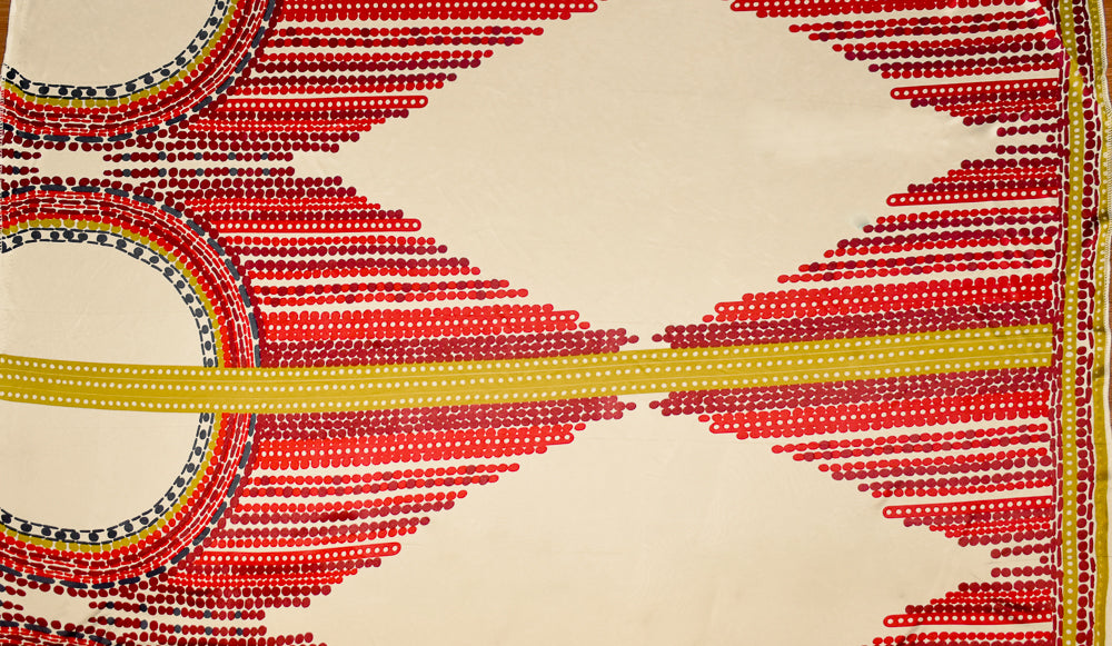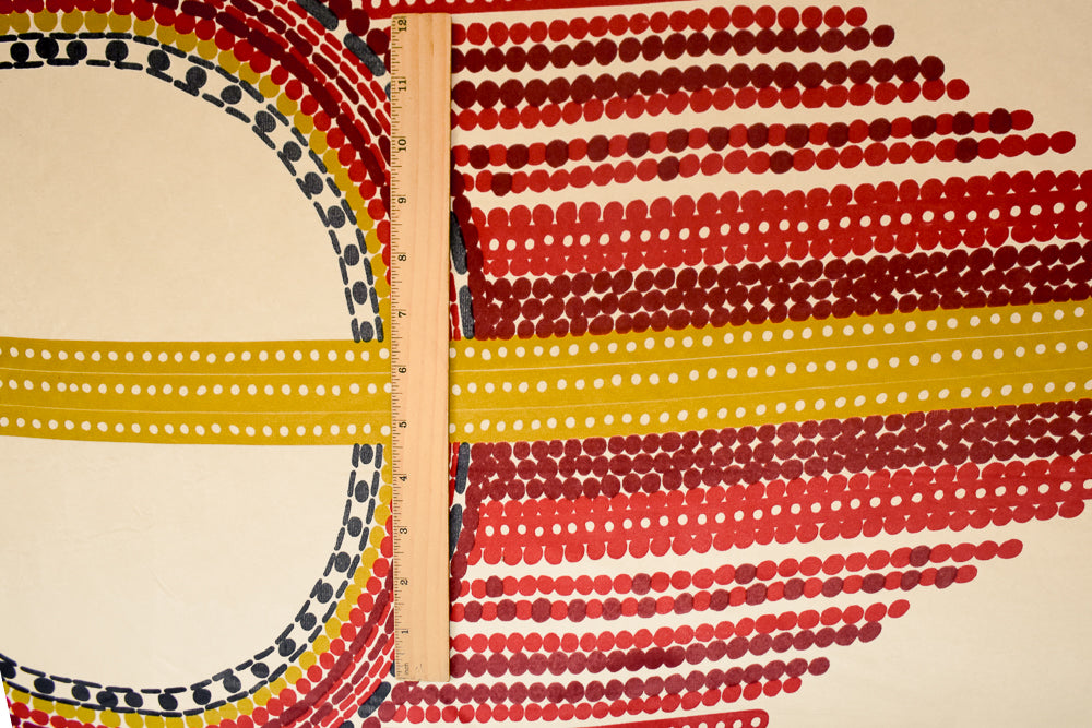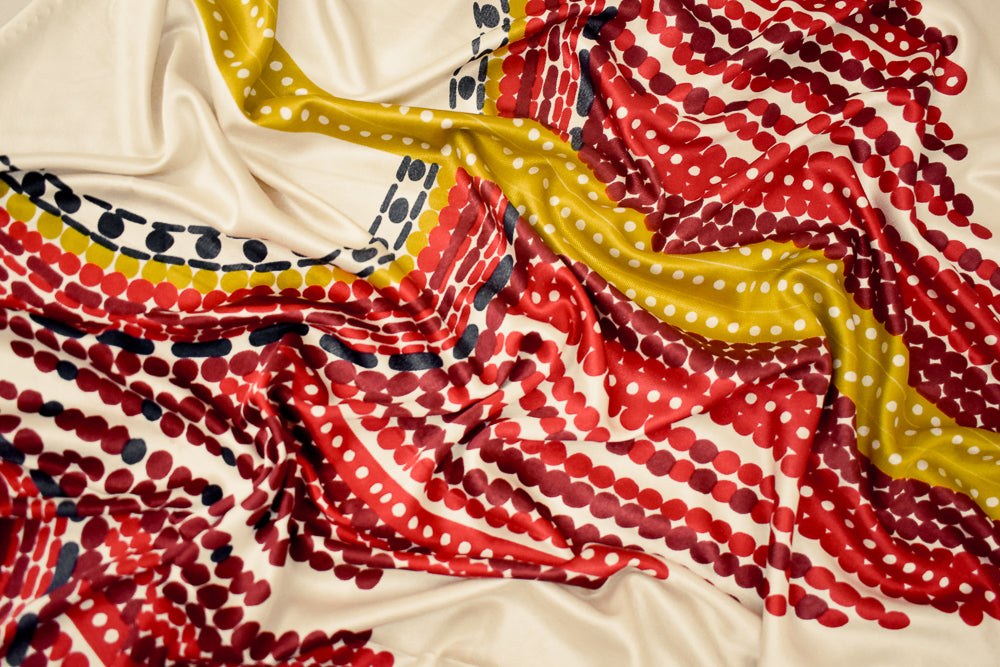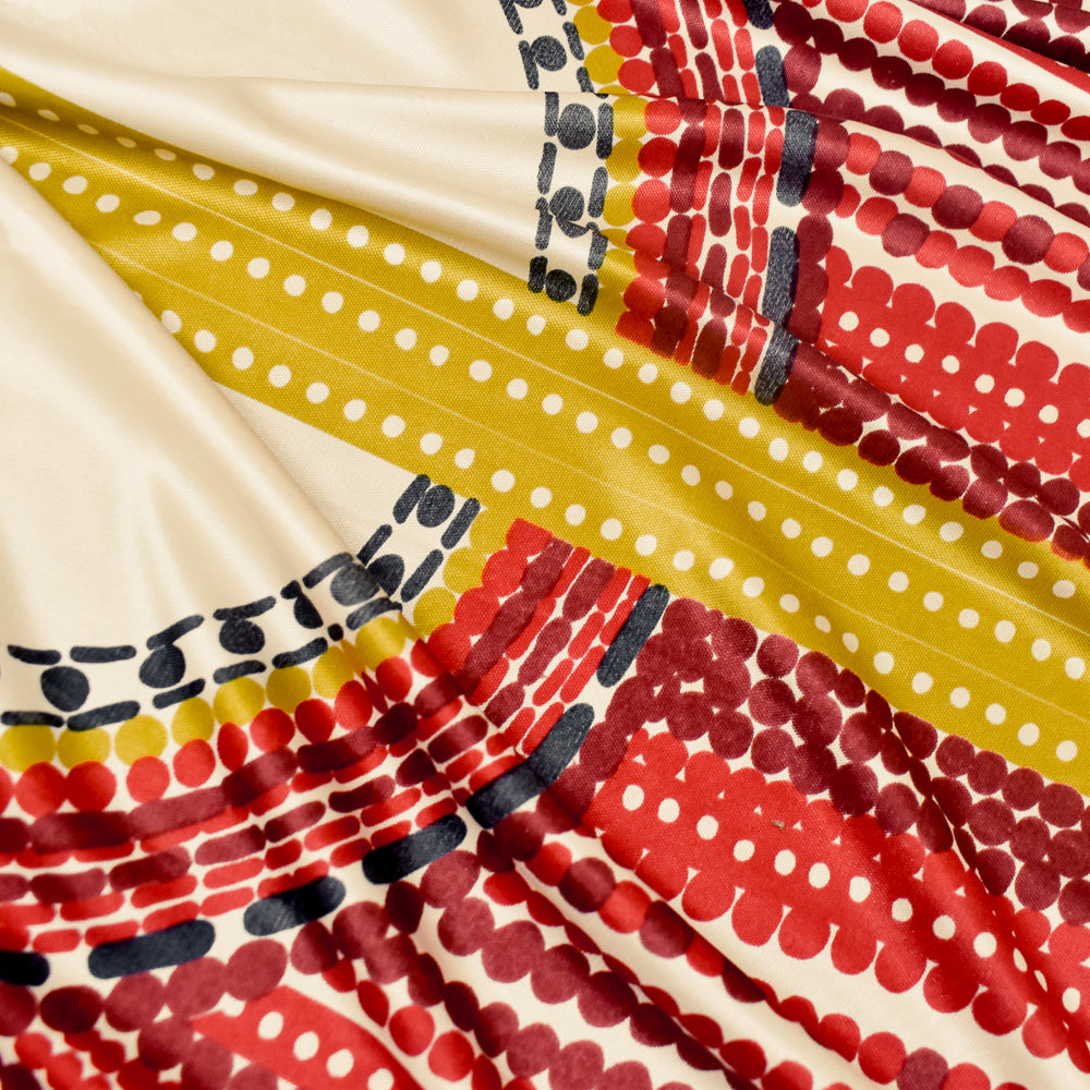 Red-Yellow-Multi Dot Border Geometric Print Stretch Silk Jersey Knit Fabric