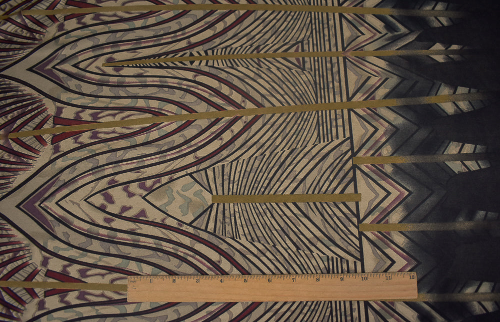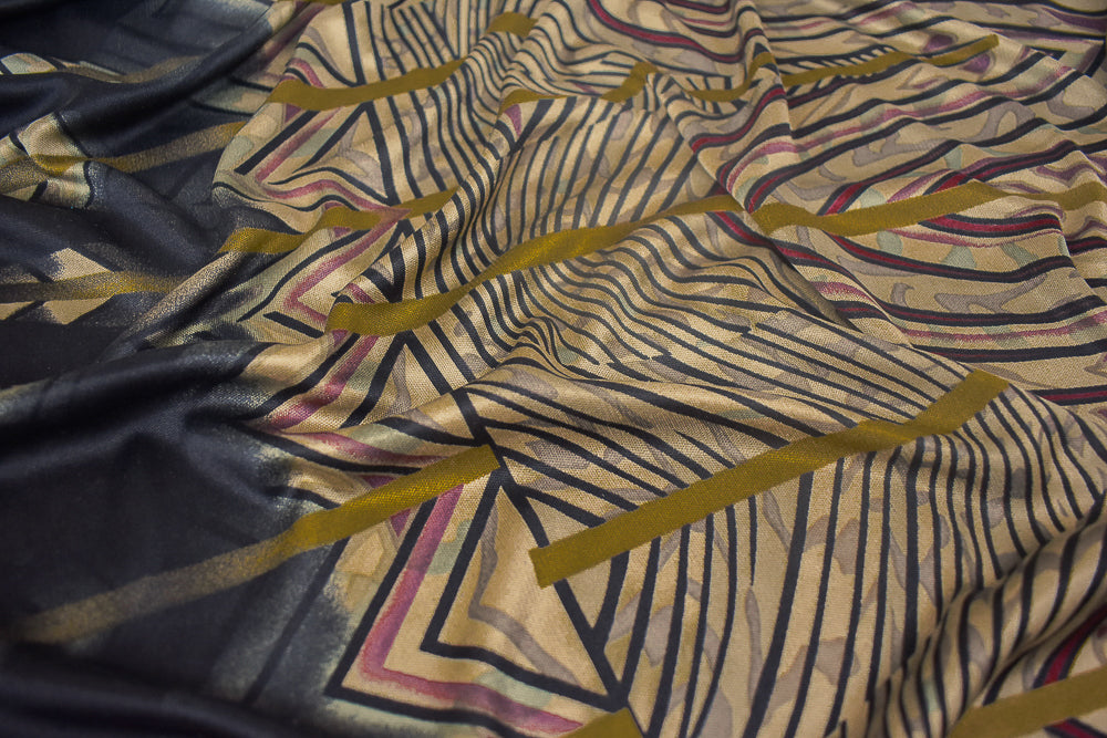 Taupe-Black-Multi Abstract Aztec Printed Stretch Silk Jersey Knit Fabric