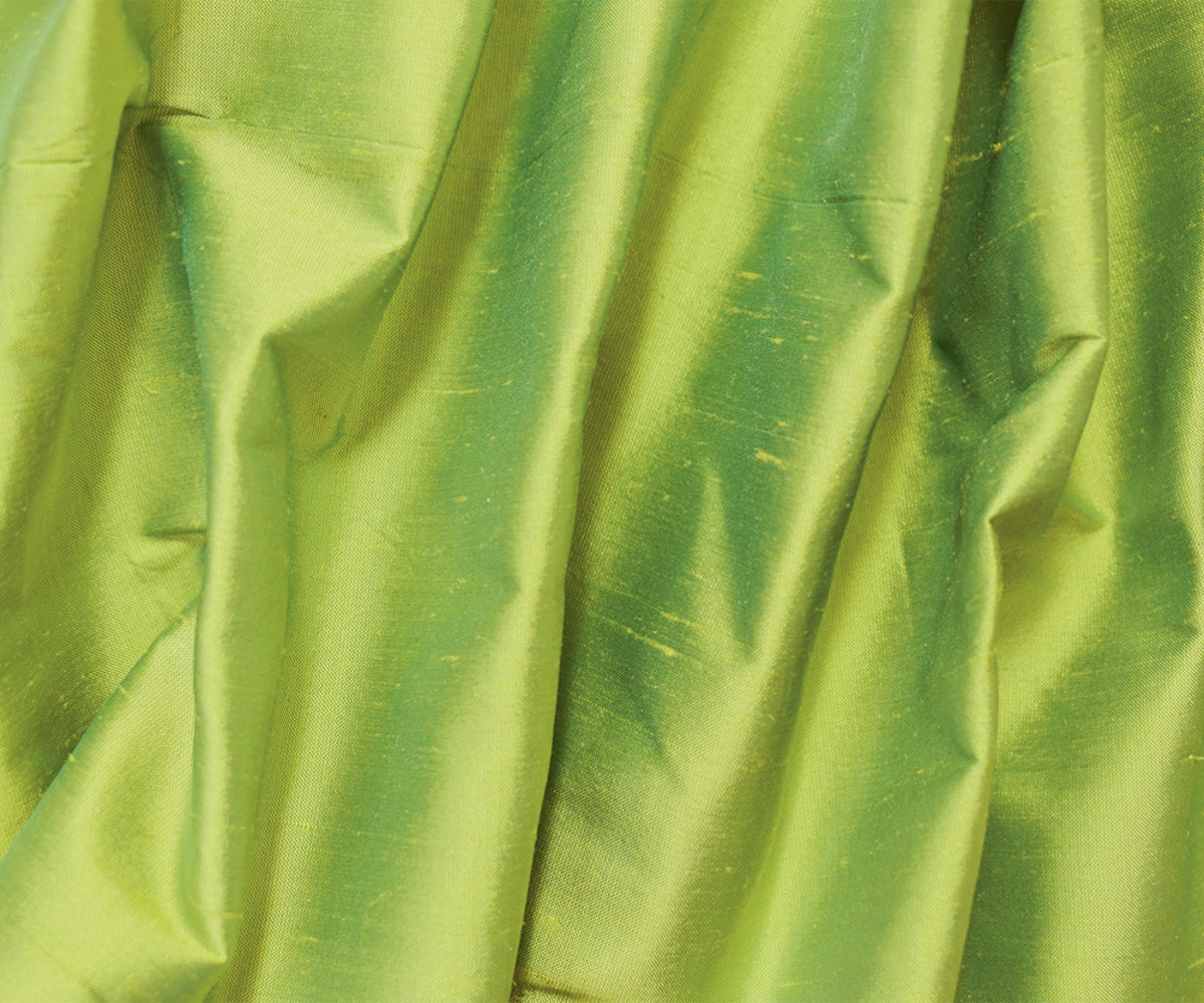 Turquoise-Lime Iridescent Silk Dupioni Woven Fabric