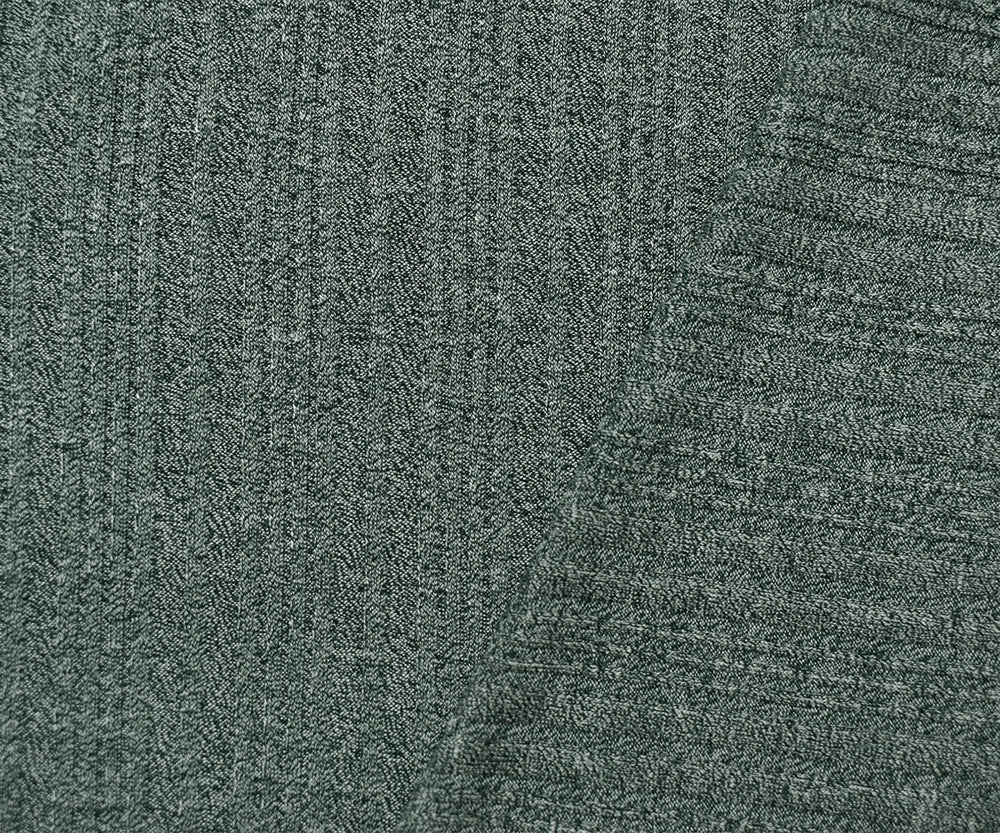 2 YD PC-Gray-Green-White Poly Blend Stretch Texture Multi Rib Knit Fabric
