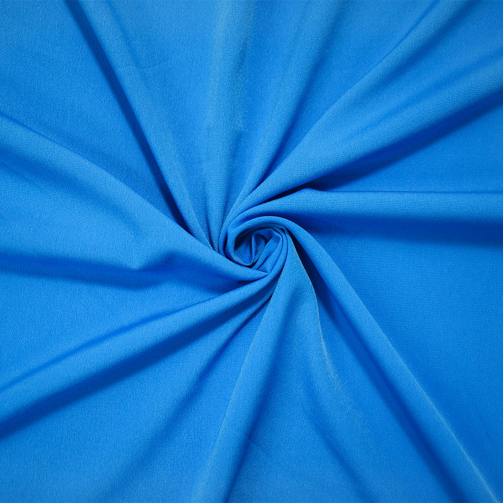 -Blue Poly Solid Crepe Dobby Woven Fabric