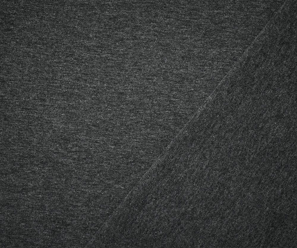 -Top quality medium weight cotton spandex knit in a deep charcoal gray with heather effect. The perfect knit fabric staple! True medium to heavy 12 oz weight with a soft hand, good 4 way stretch, and nice recovery.