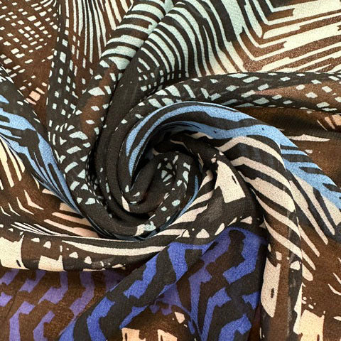 Blue Zebra Stripe Print Poly Print Chiffon Fabric