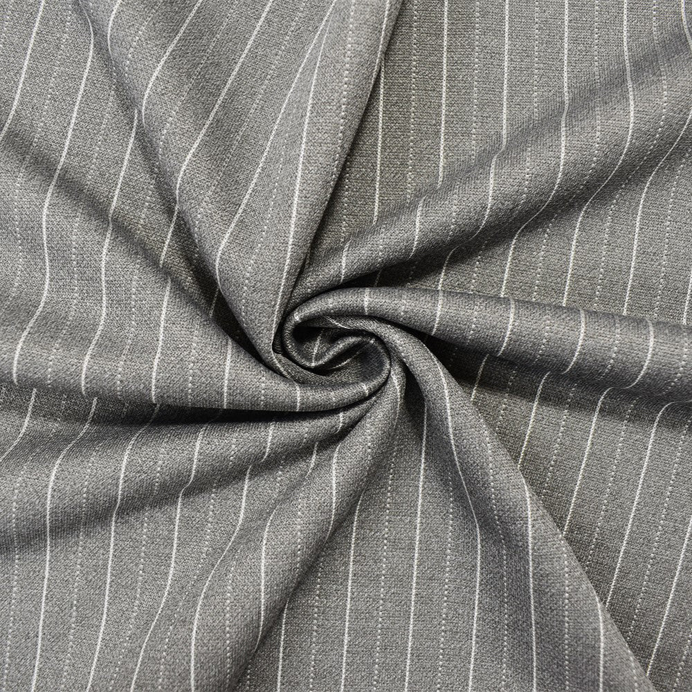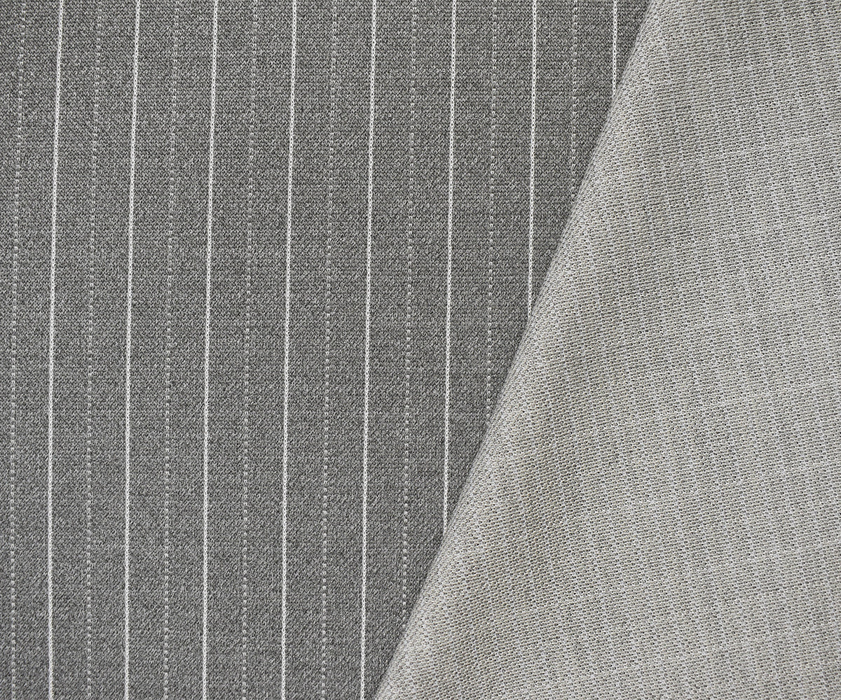 Gray-White Poly Wool Spandex Stretch Stripe Double Knit Jacketing Fabric