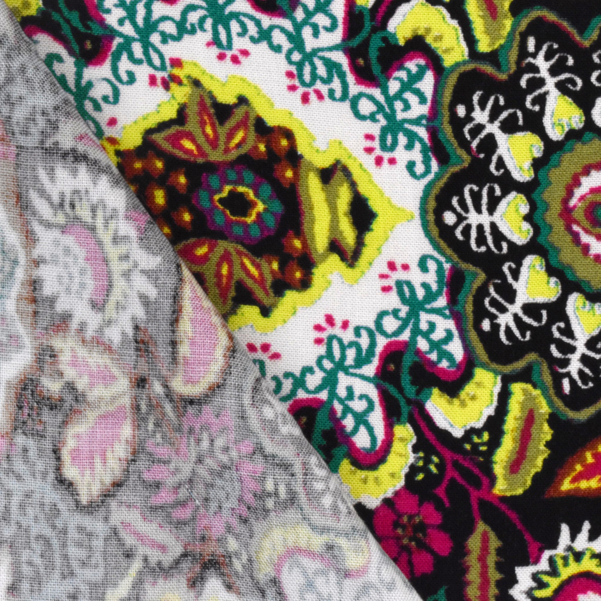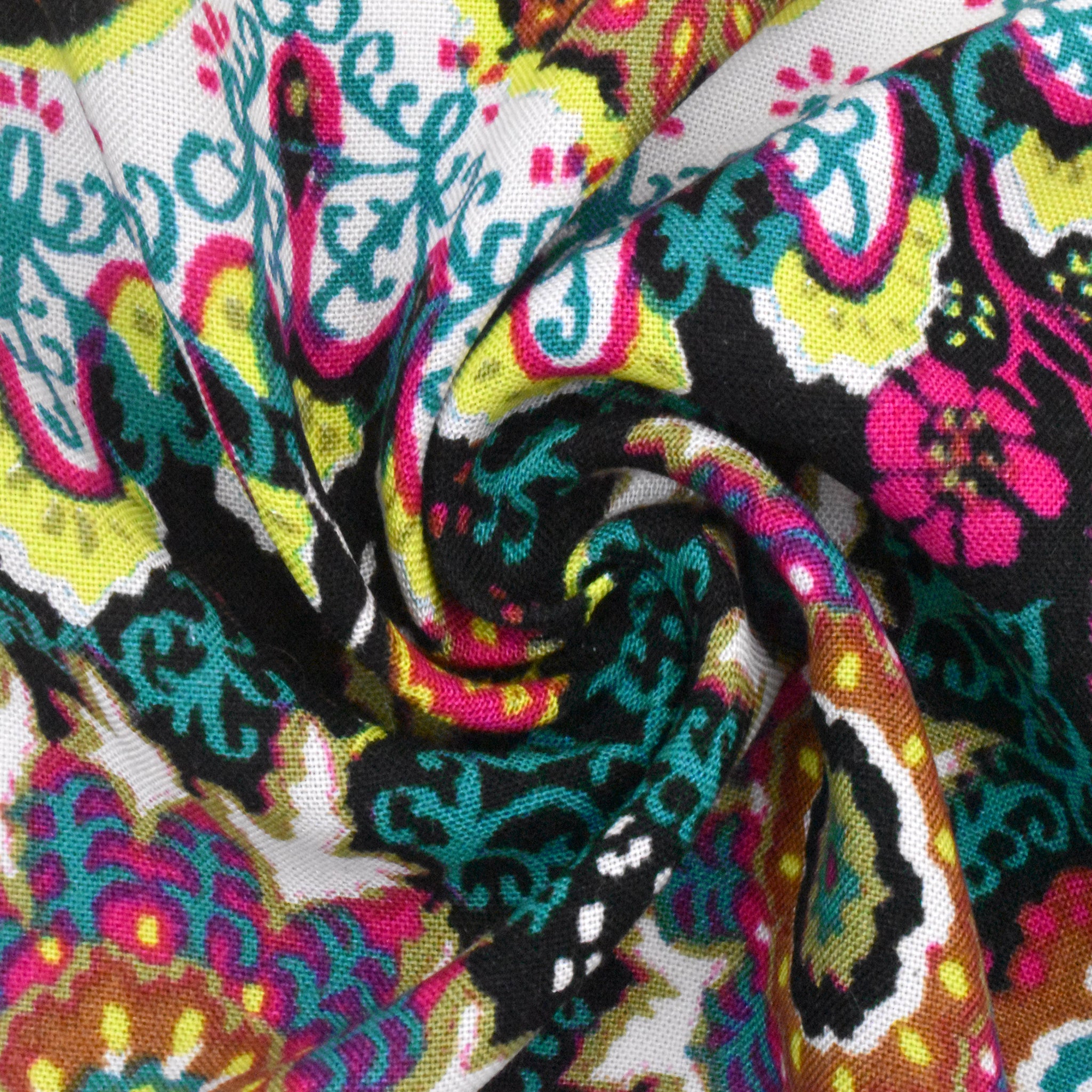 Black-Lime-Multi Kaleidoscope Floral Printed Woven Fabric