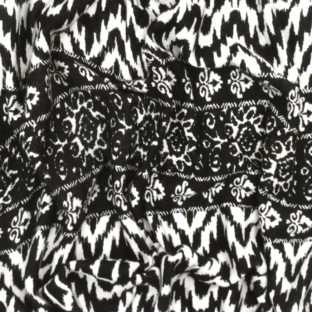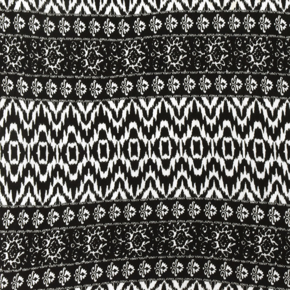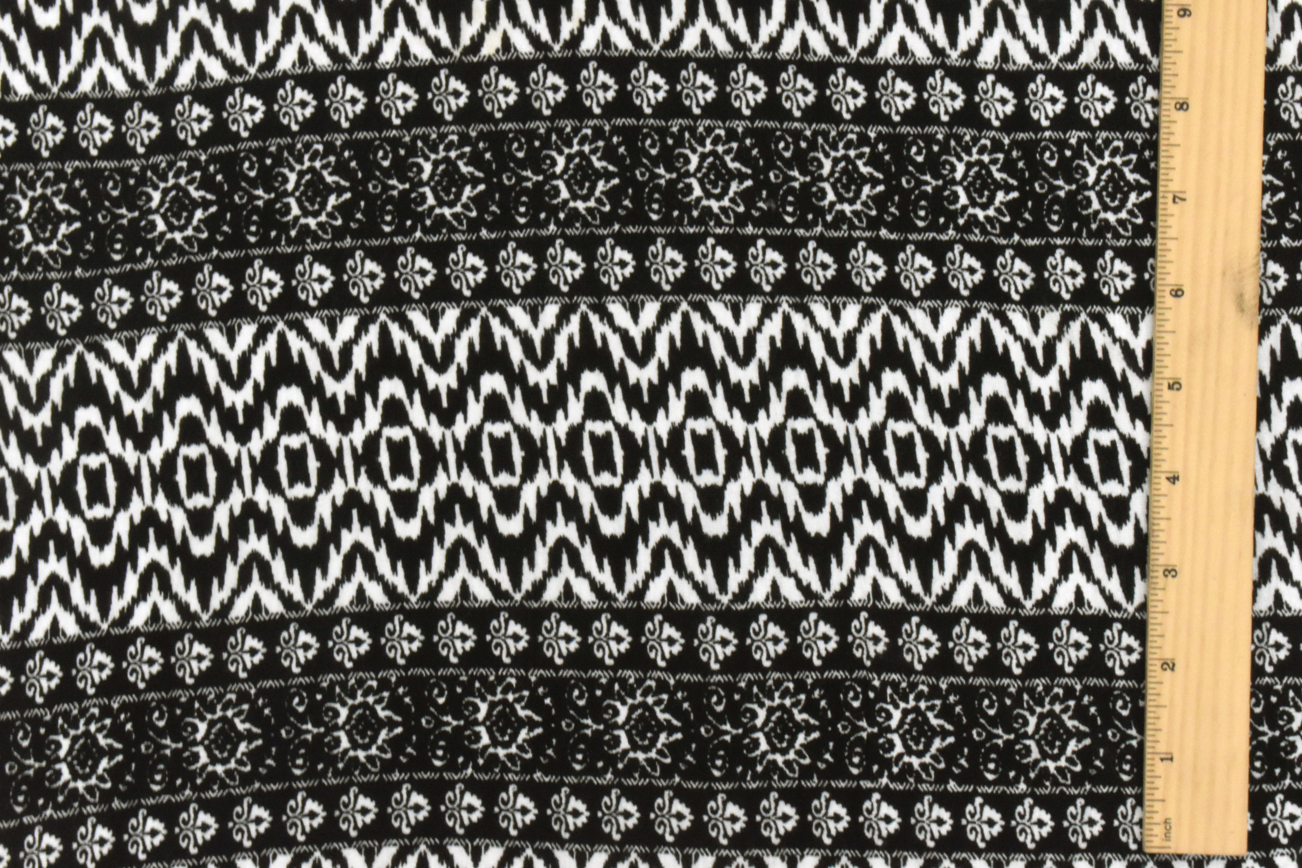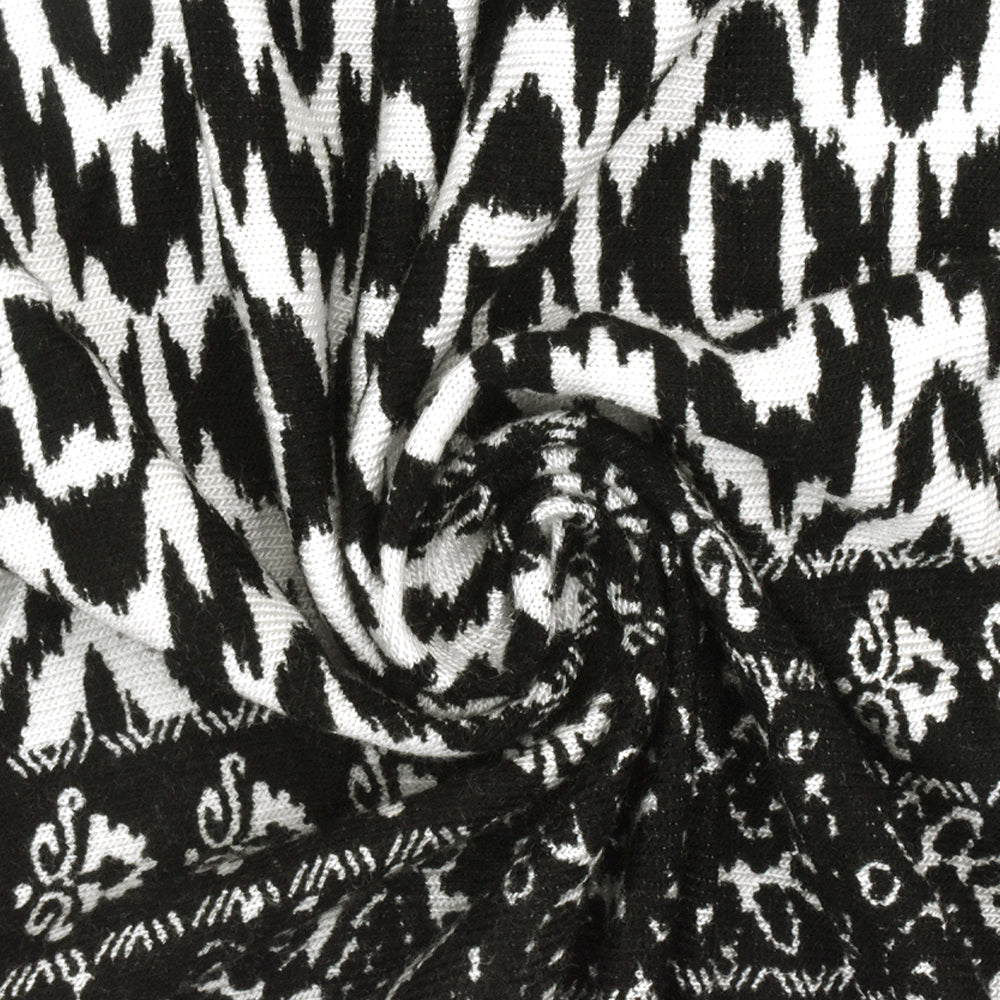 Black-White Pillar And Aztec Printed Rayon Stretch Jersey Knit Fabric