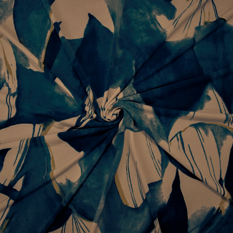 -Poly stretch spandex ITY knit fabric printed with an abstract inspired pattern