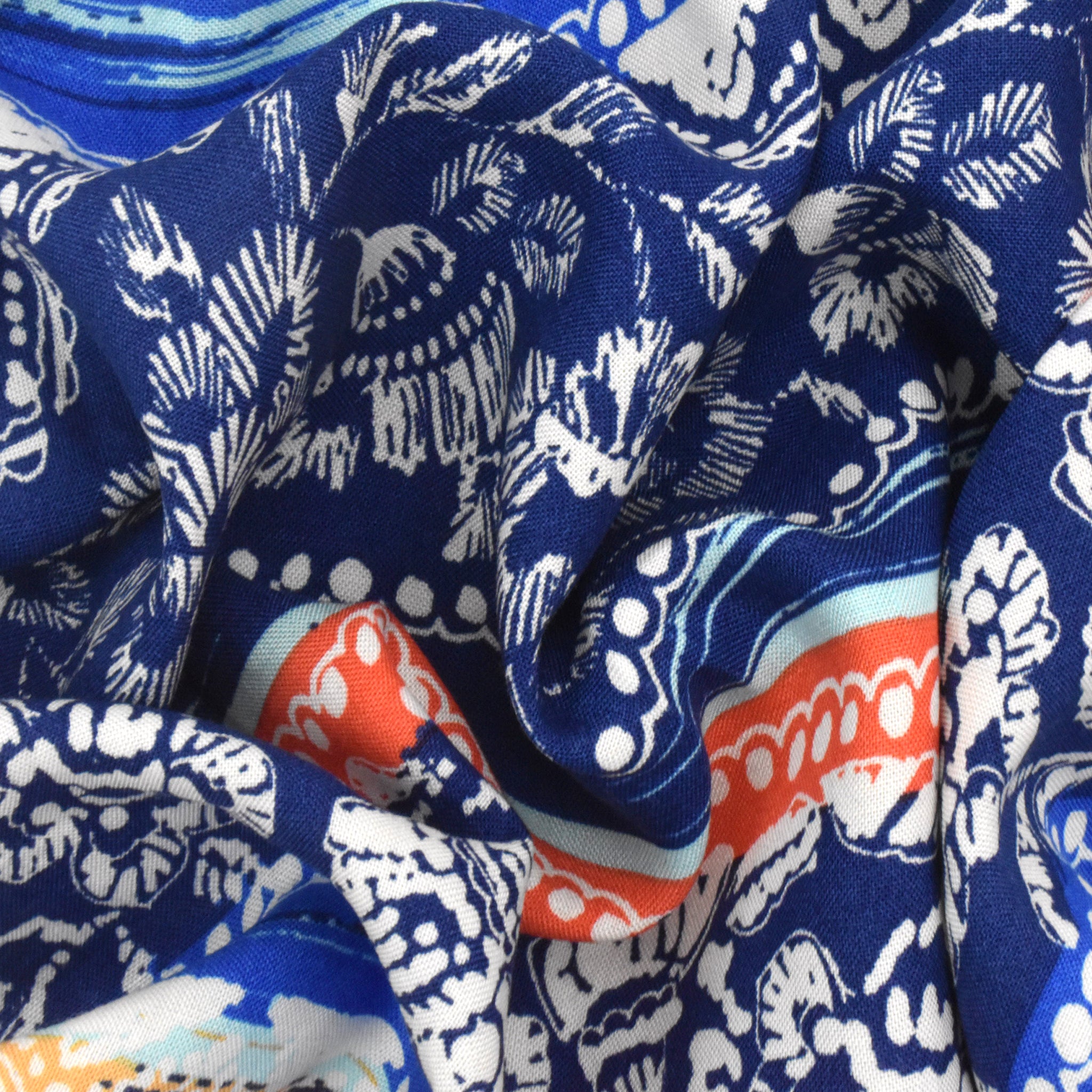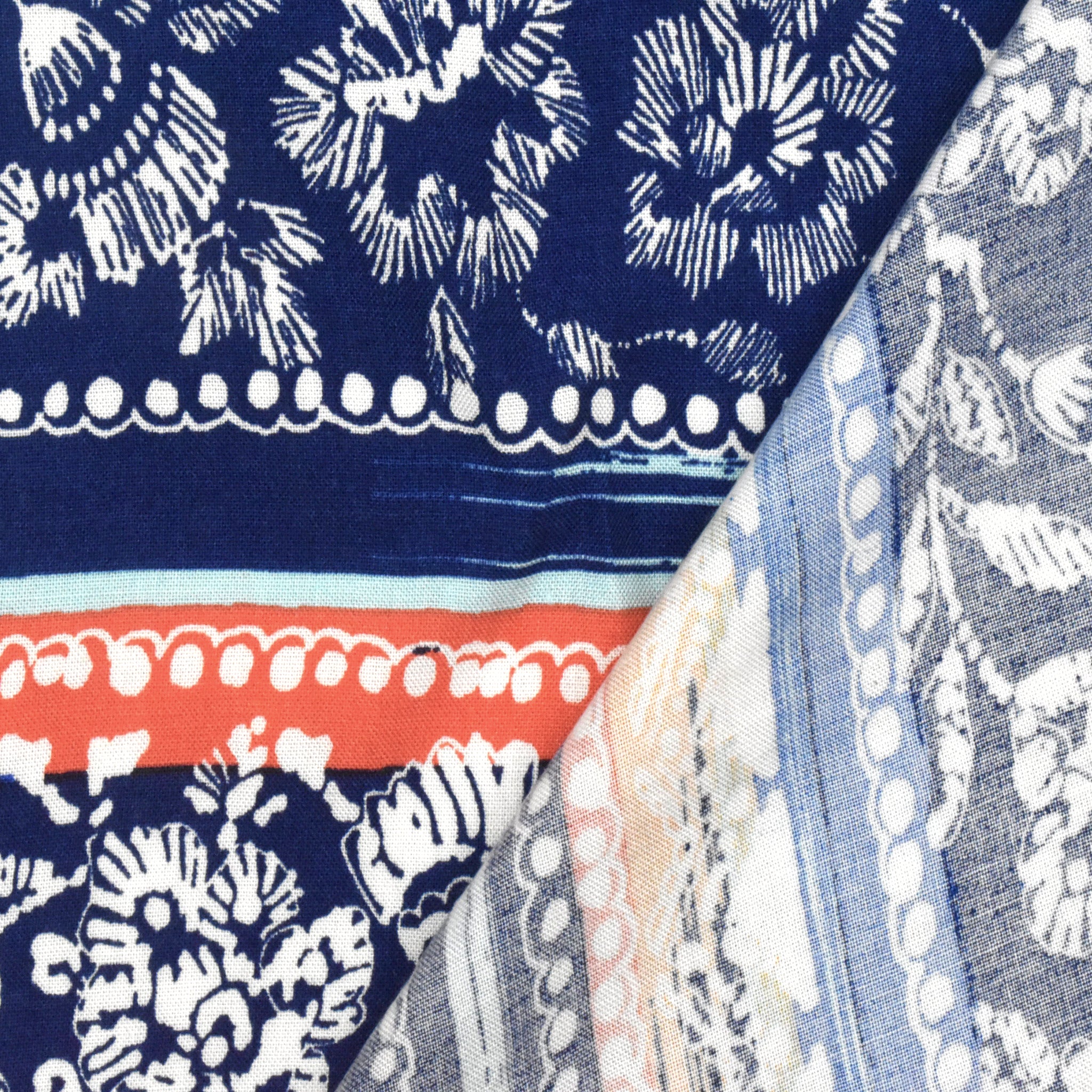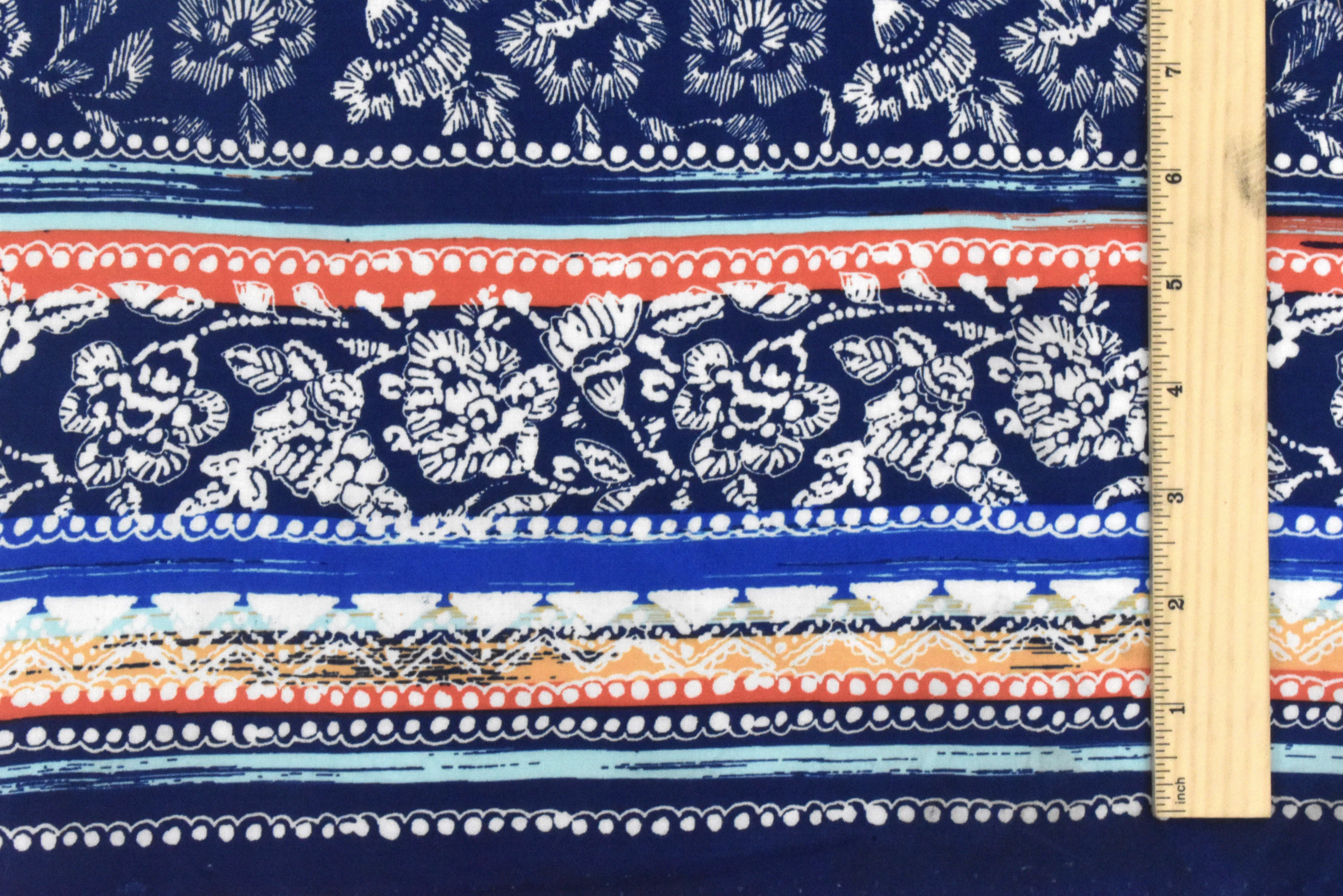 Dark Ink Blue-White-Multi Stripe Floral Printed Woven Fabric