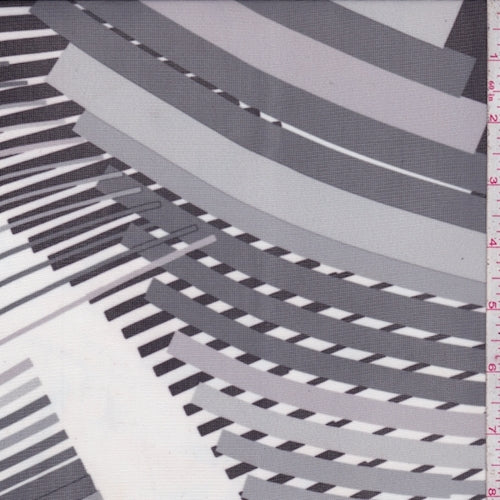 Grey/White Multi Abstract Stripe Power Mesh Fabric