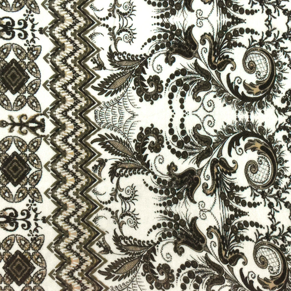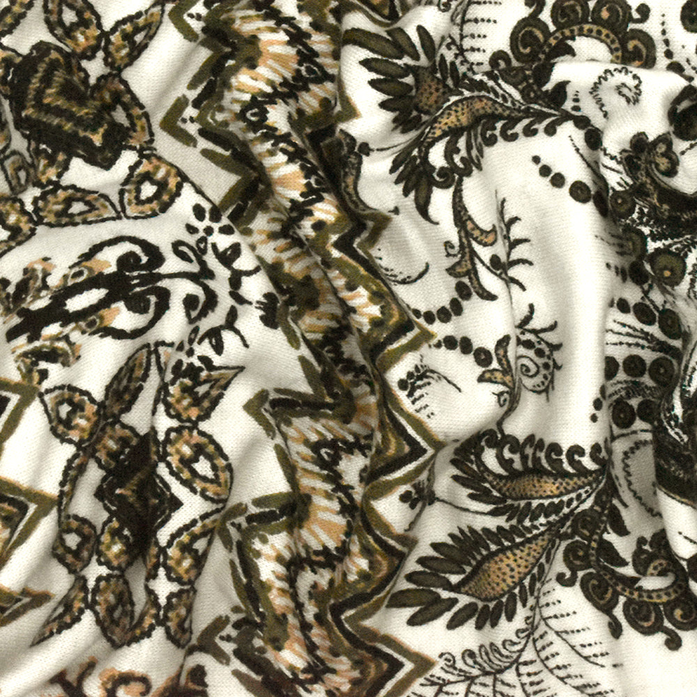Ivory-Multi Baroque Chevron Printed Slub Rayon Stretch Jersey Knit Fabric