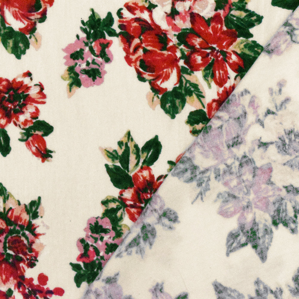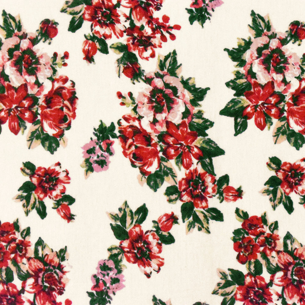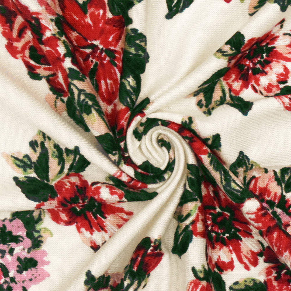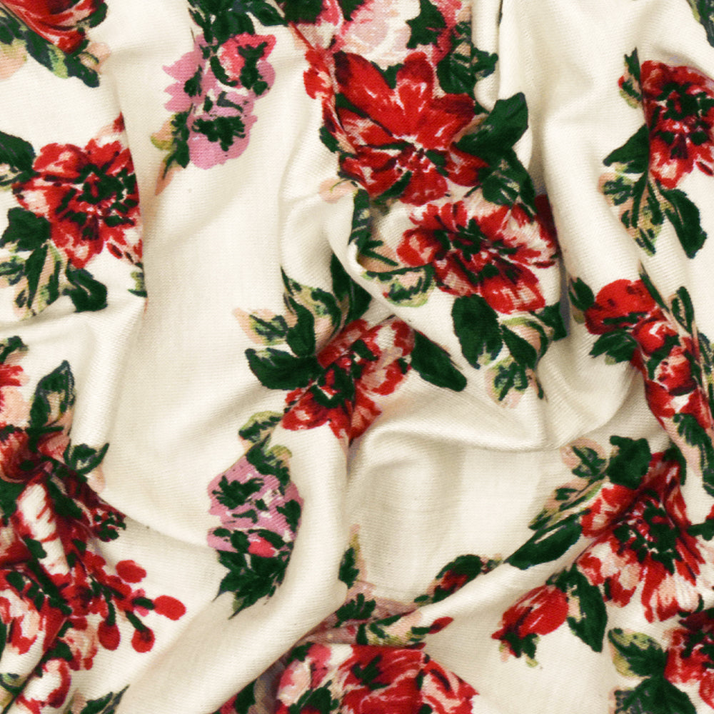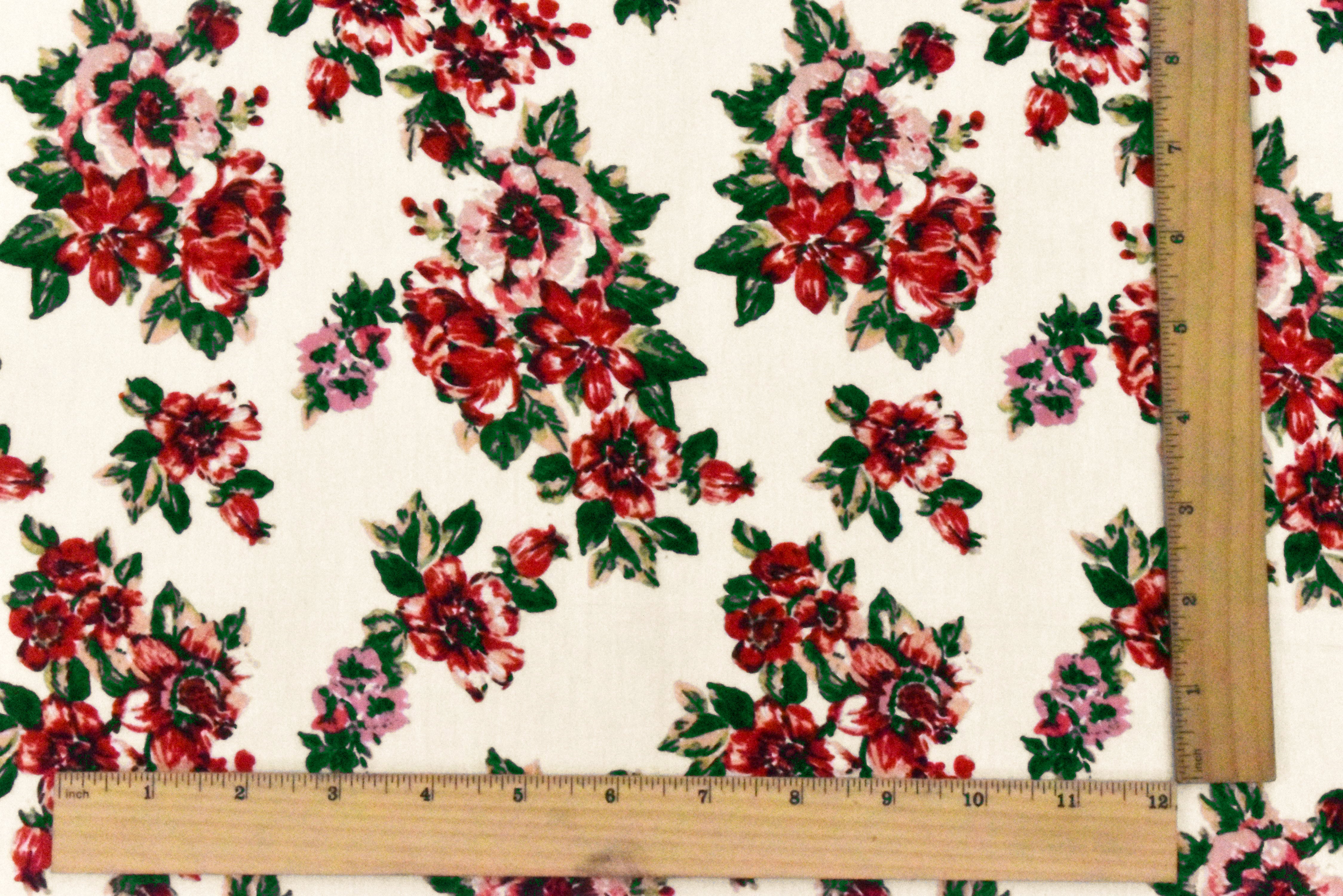 Ivory-Rose Red-Multi Floral Printed Stretch Rayon Jersey Knit Fabric