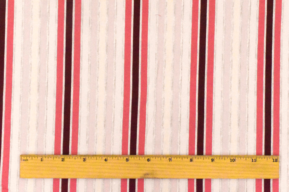Light Pink-Gray-Multi Stripe Printed Stretch Cotton Poplin Woven Fabric