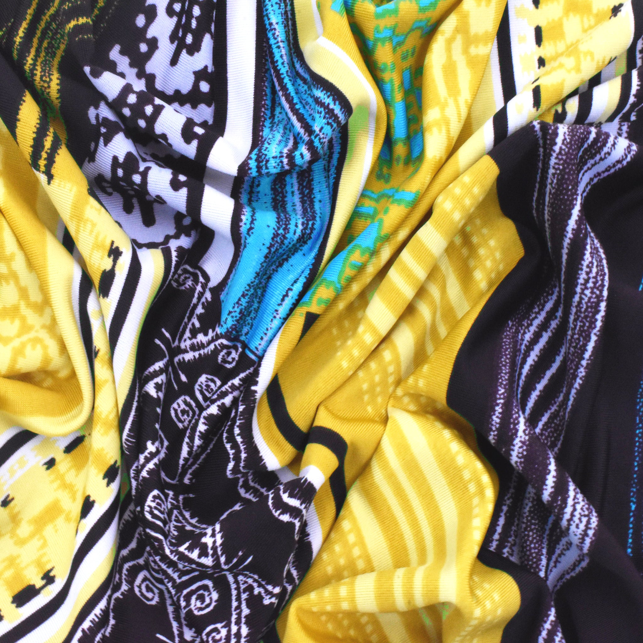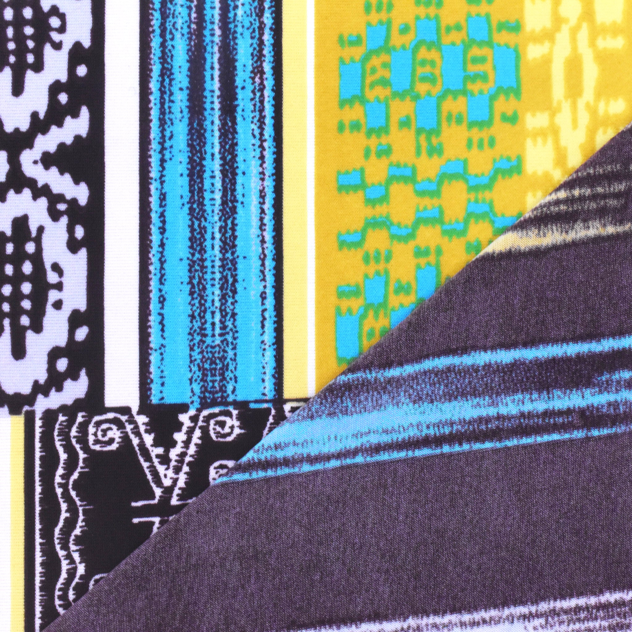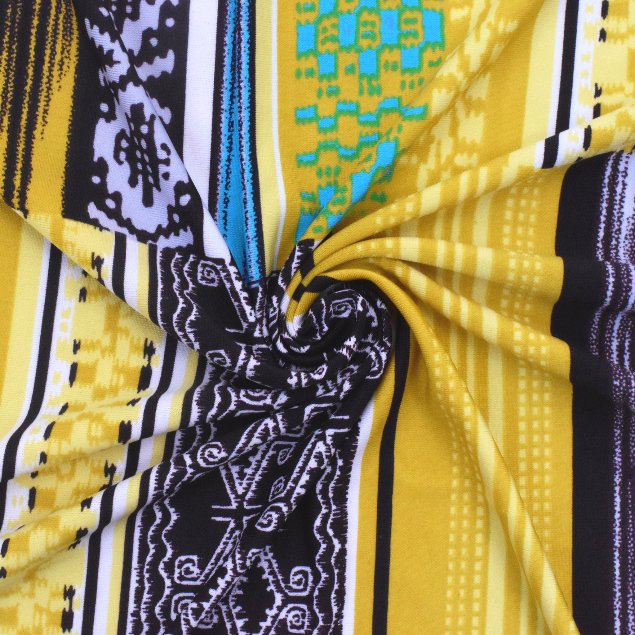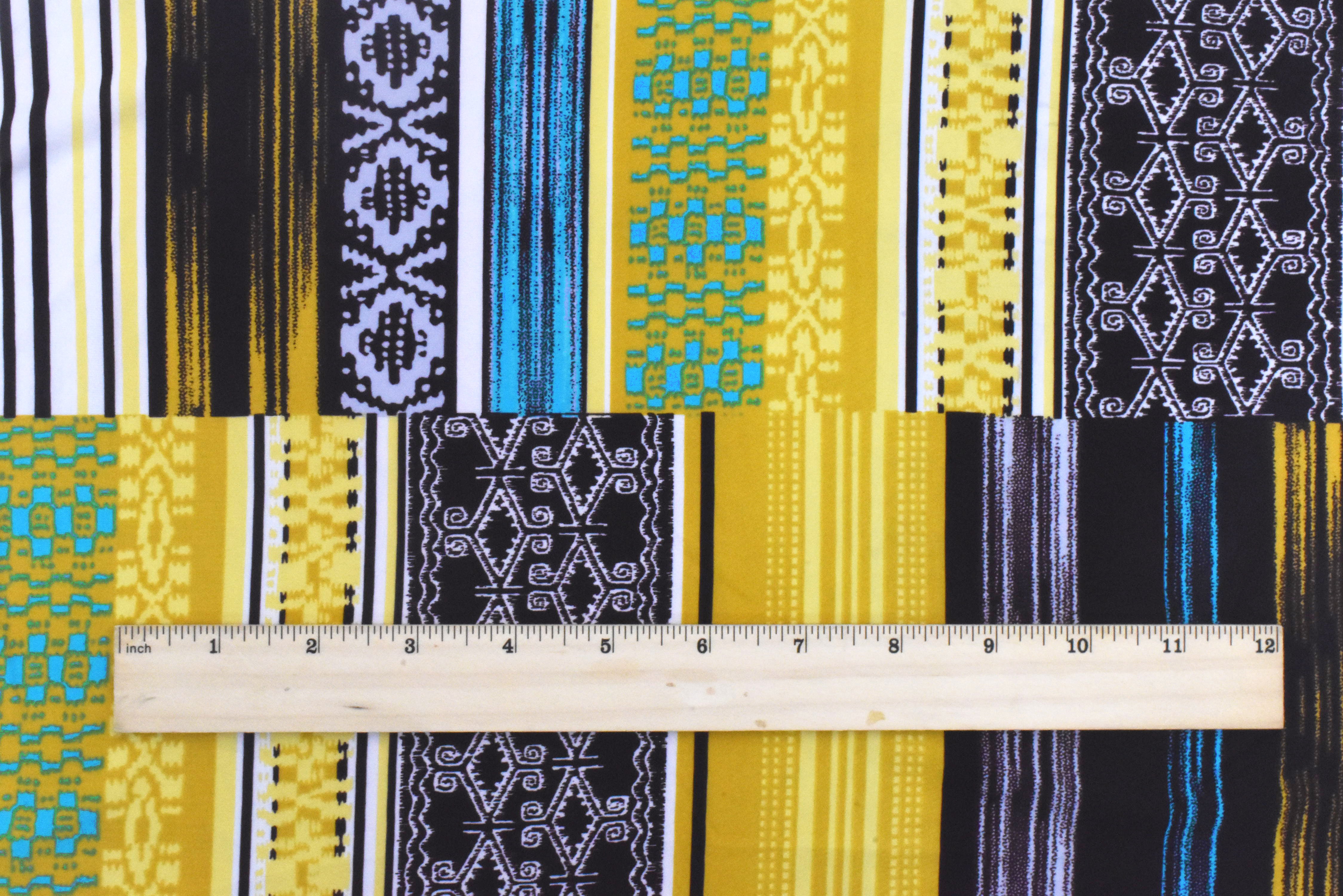Mud/Dijon Yellow-Multi Stripe Aztec Printed Stretch Activewear Knit Fabric