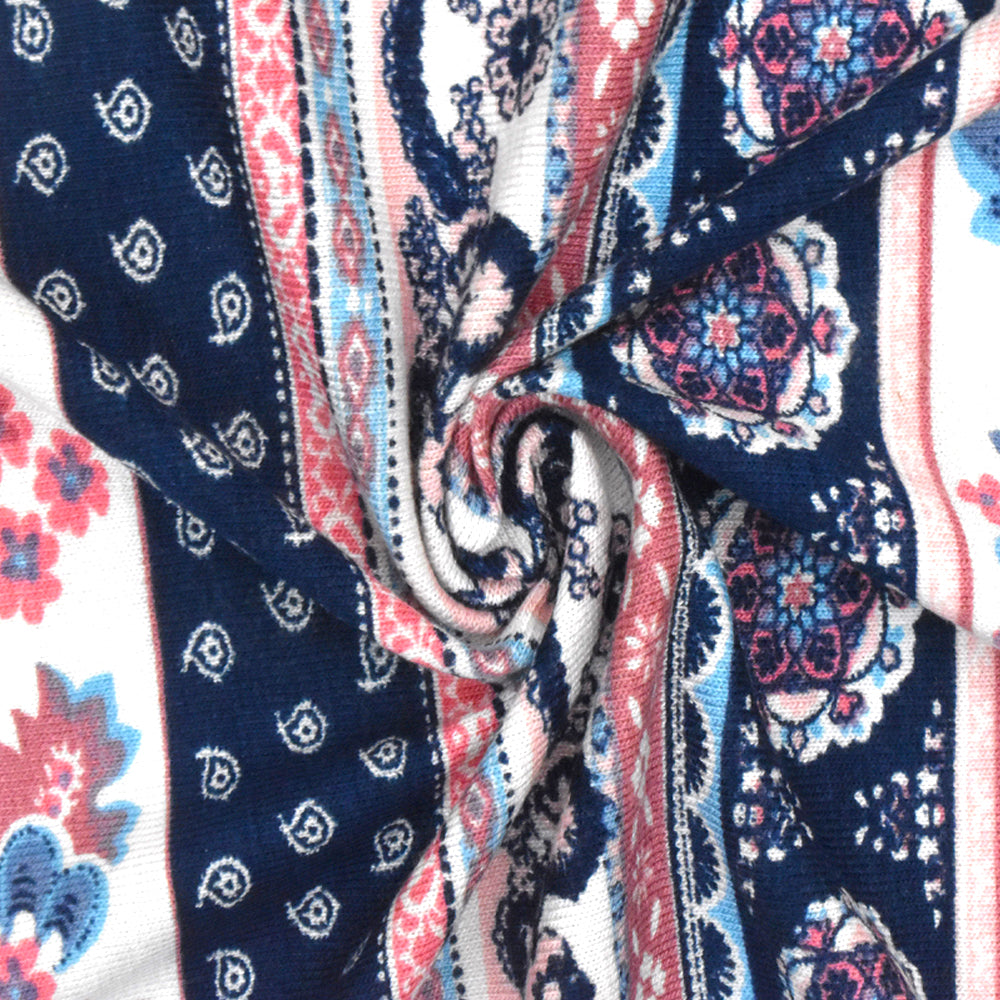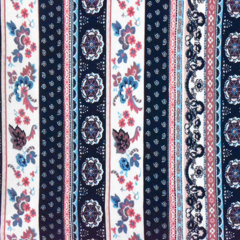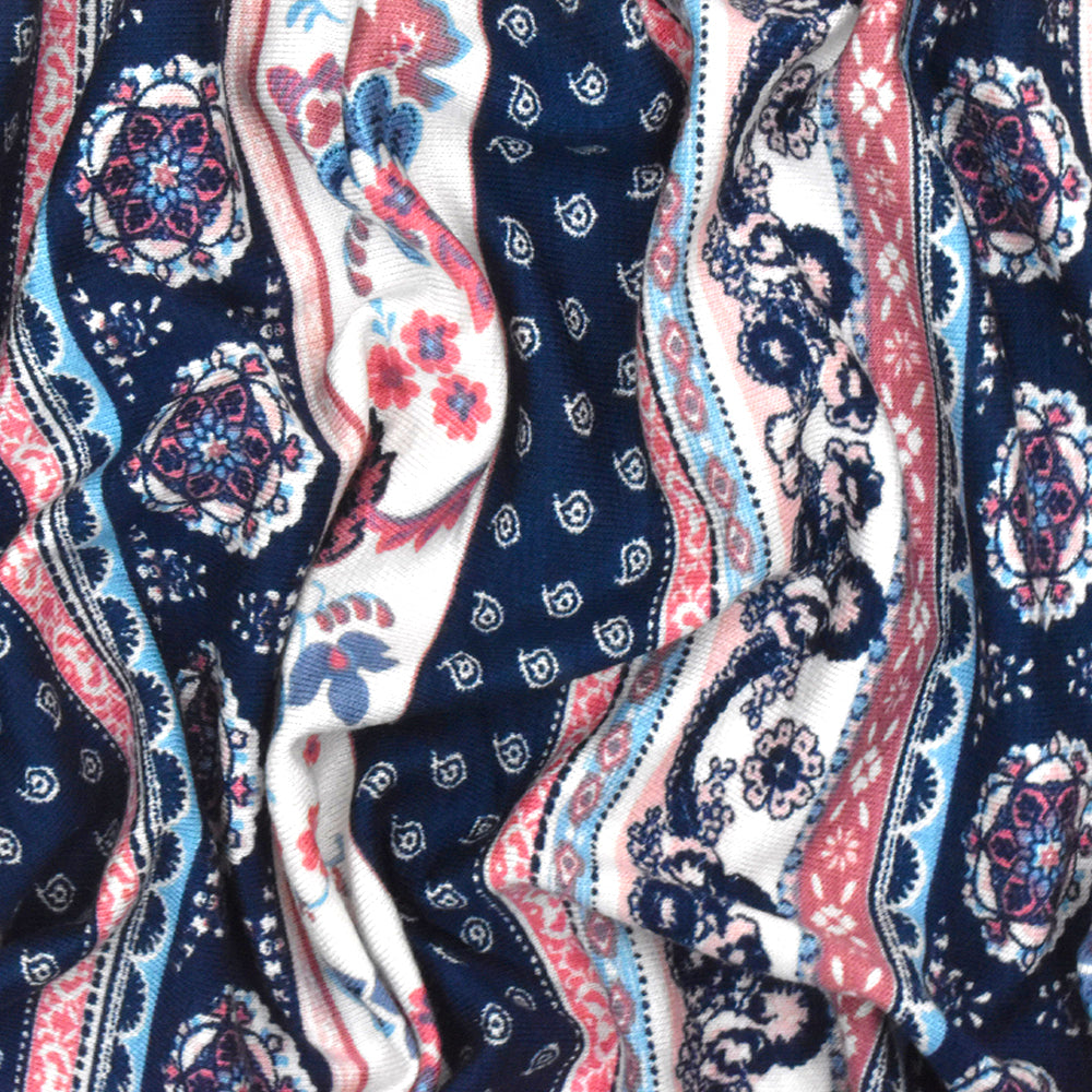 Navy Blue-White-Multi Moroccan Stripe Printed Rayon Stretch Jersey Knit Fabric