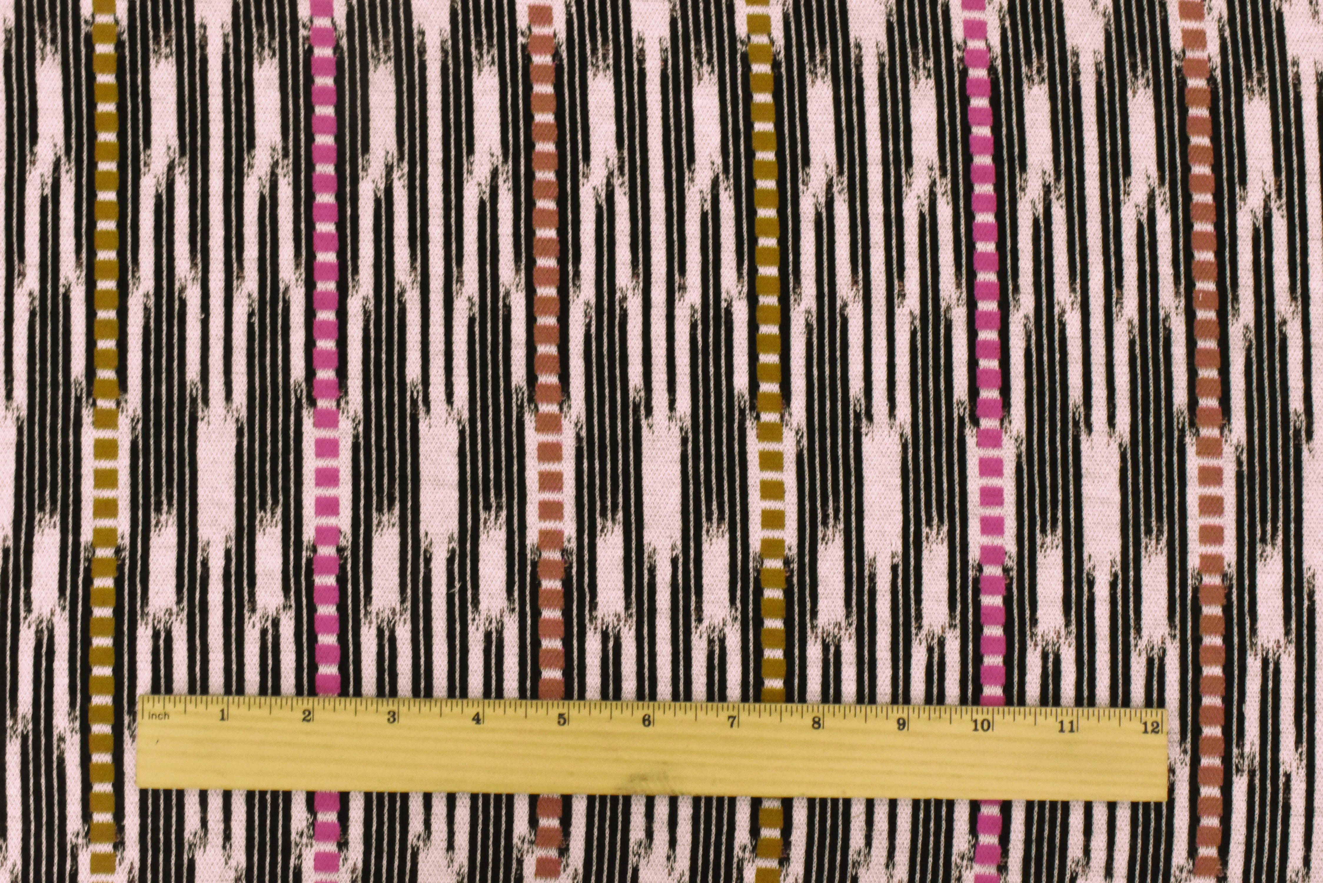 Pink Ivory-Black-Multi Abstract Ikat Stripe Stretch Double Knit Fabric