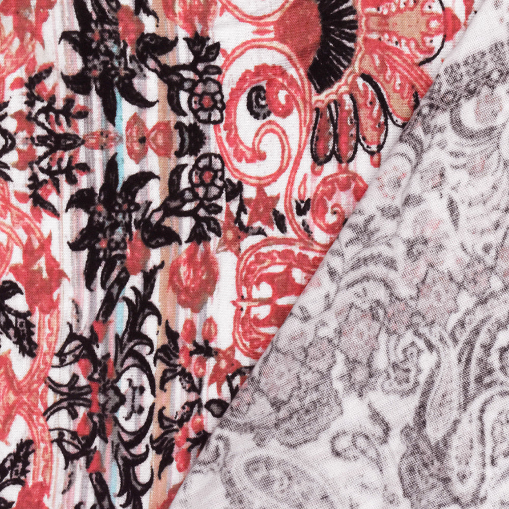 Pink-White-Multi Baroque Stripe Printed Rayon Stretch Jersey Knit Fabric