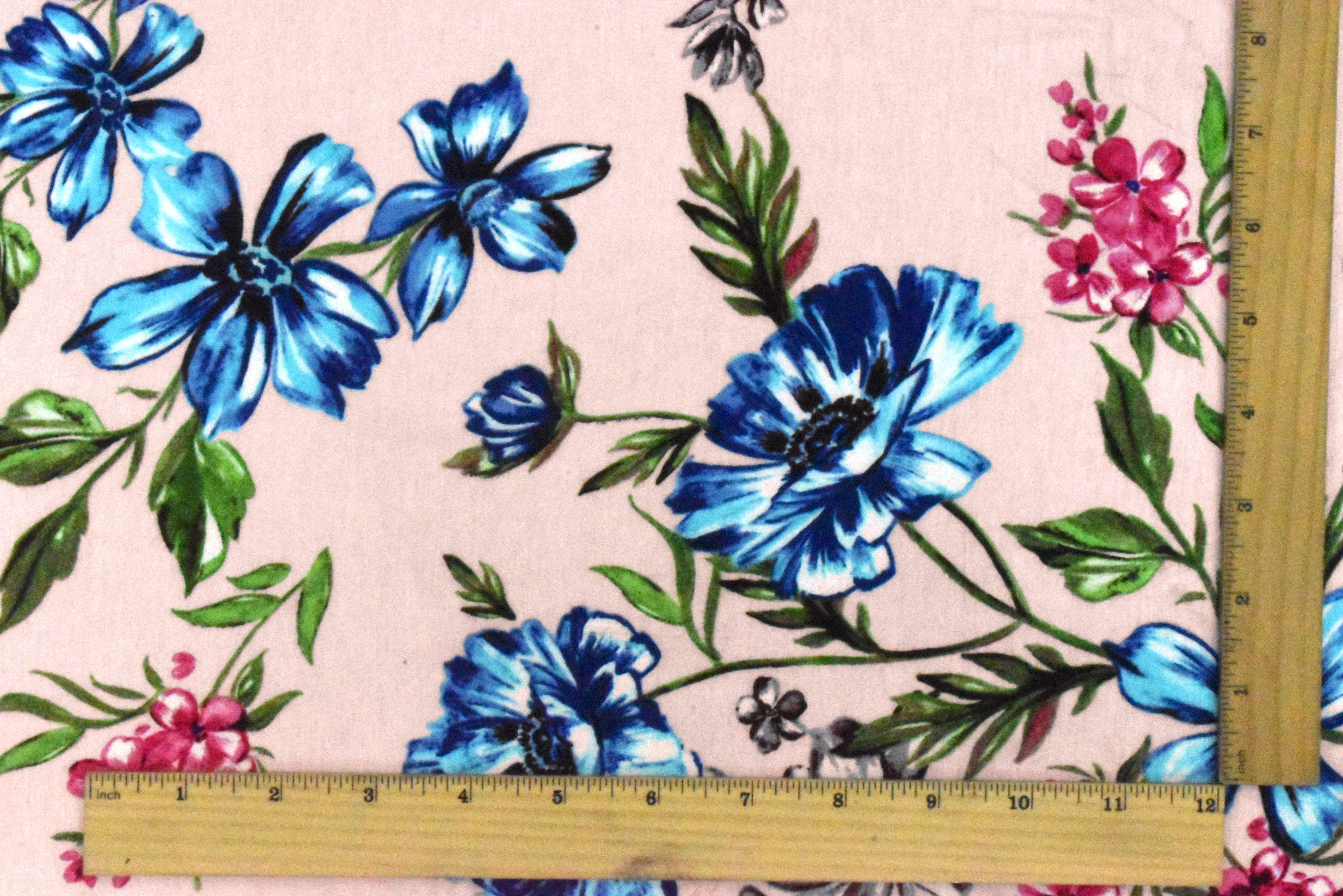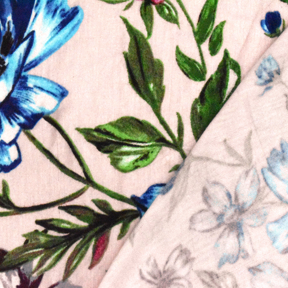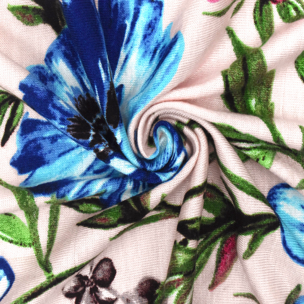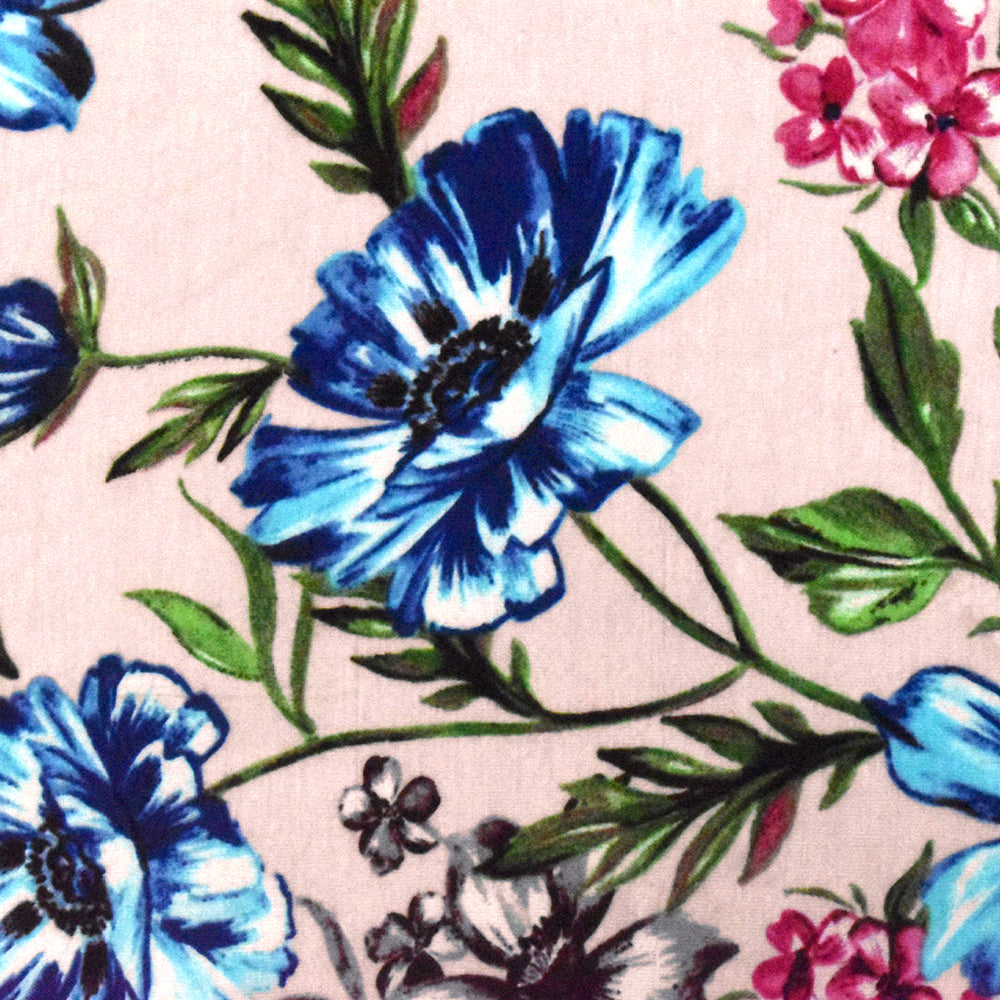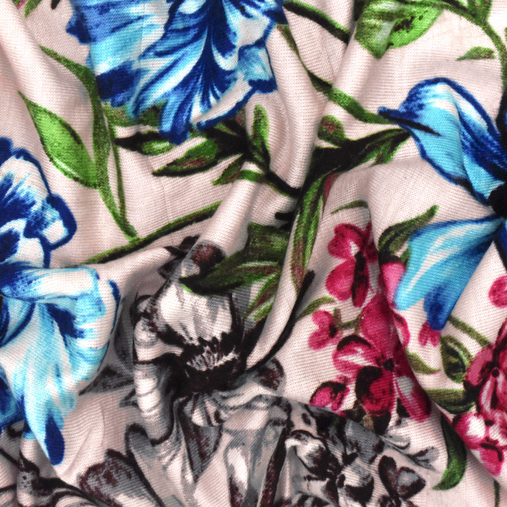 Powder Pink-Multi Floral Printed Slub Stretch Rayon Jersey Knit Fabric