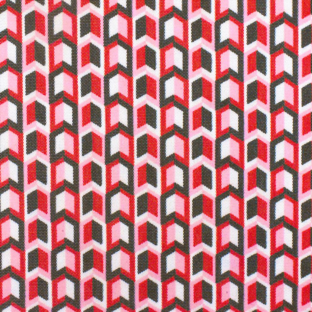 Red-Black-Multi Arrow Printed Stretch Polyester Mesh Knit Fabric