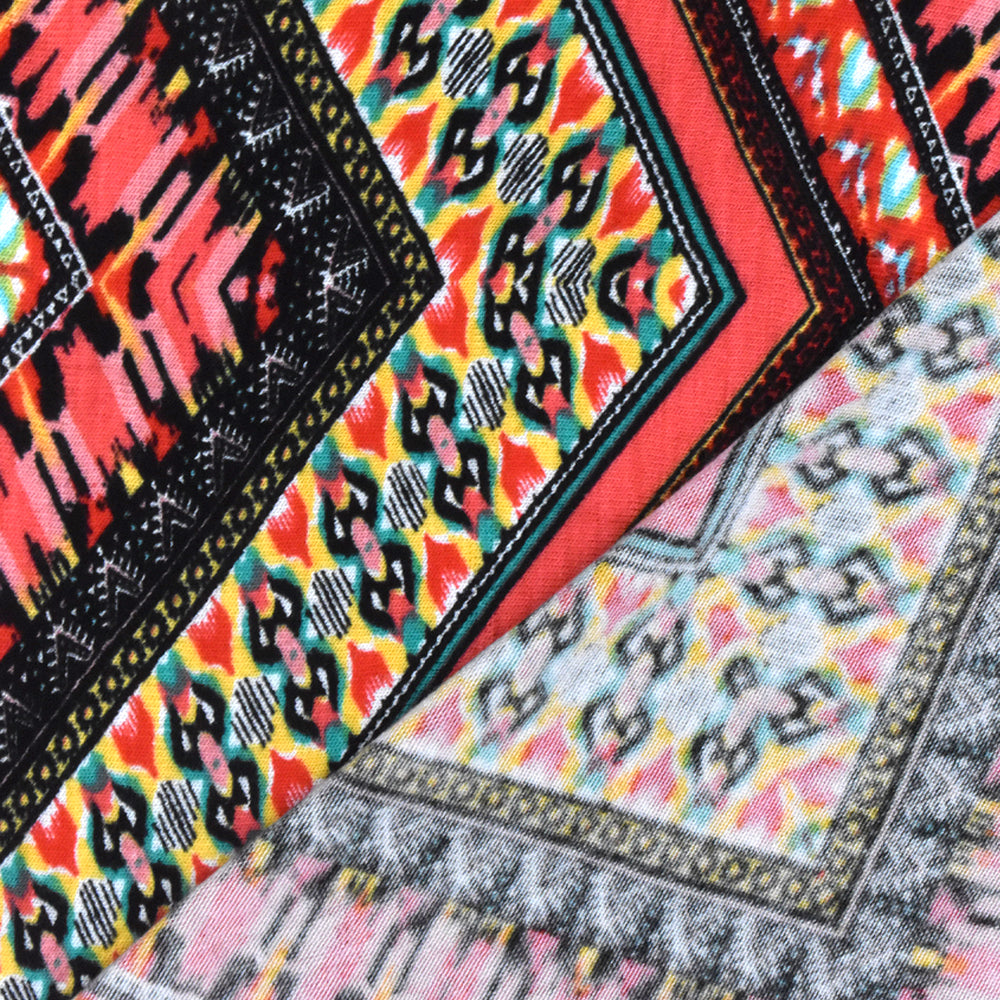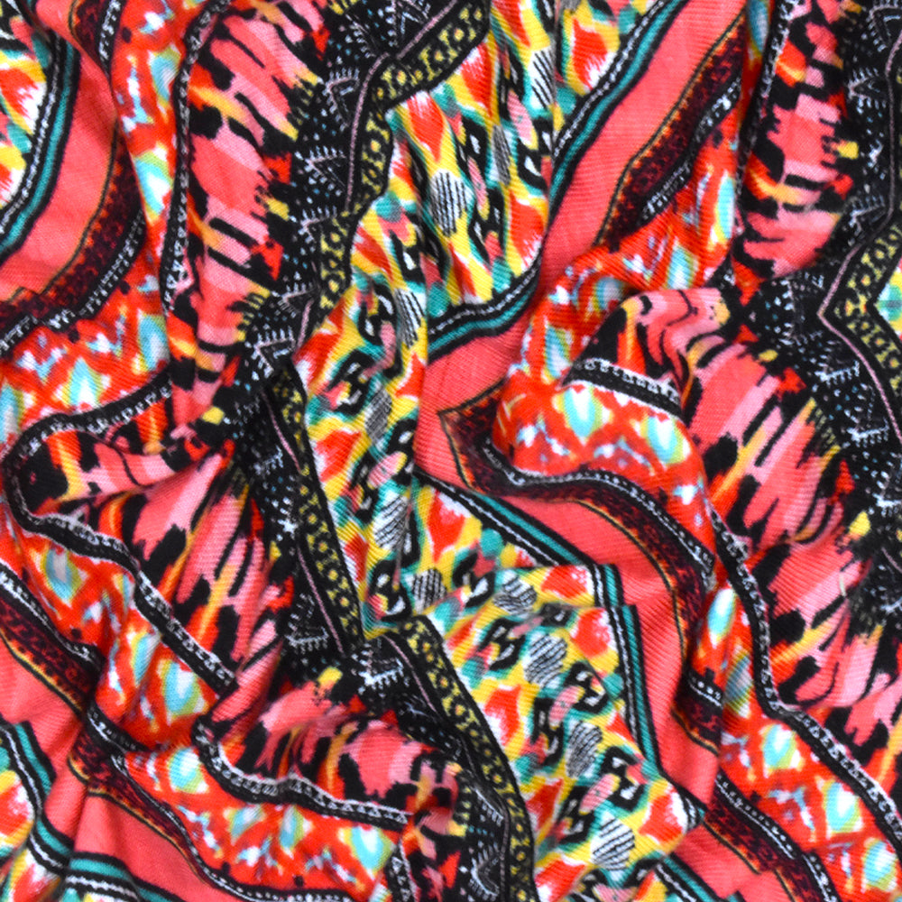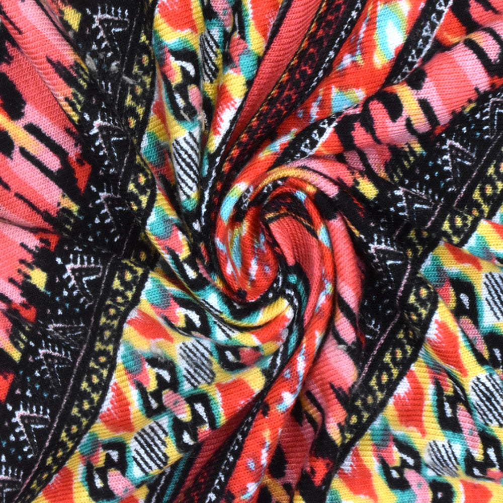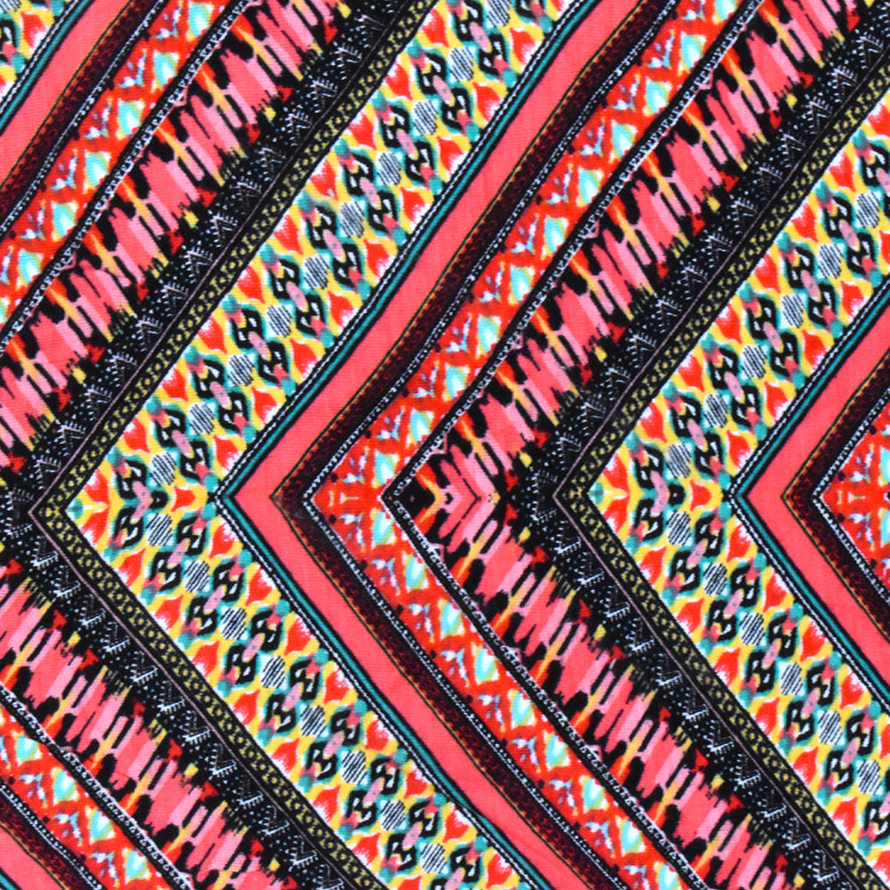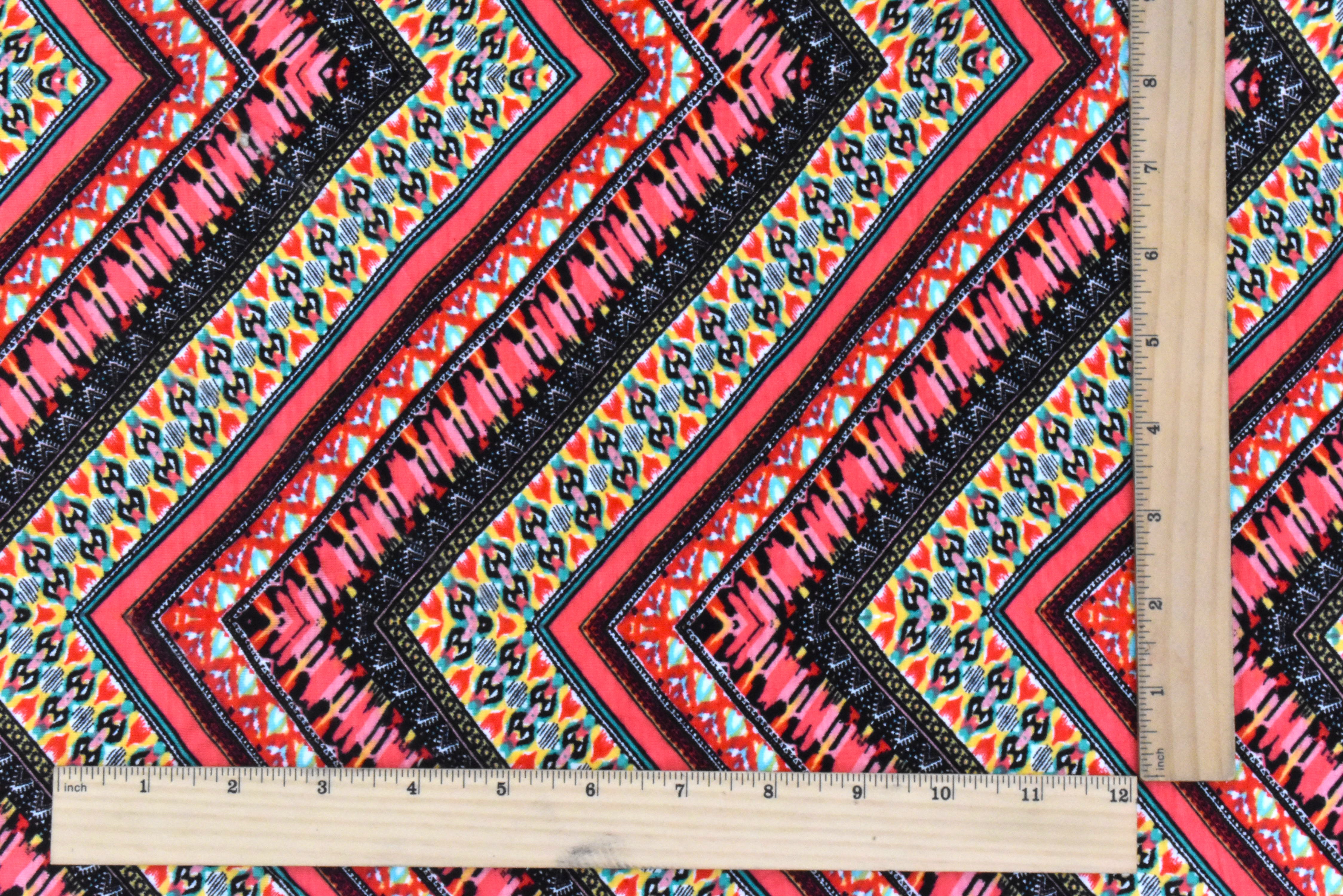 Red-Black-Multi Mix Pattern Chevron Printed Stretch Jersey Knit Fabric
