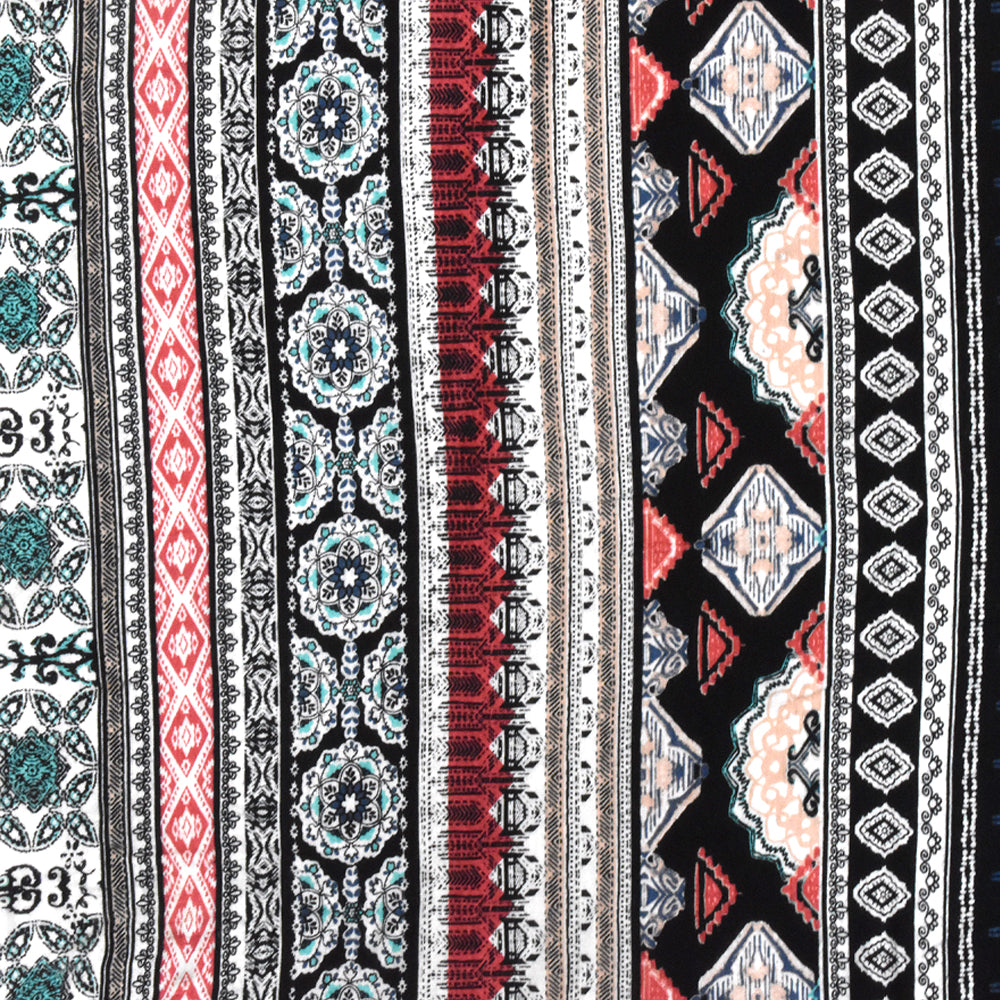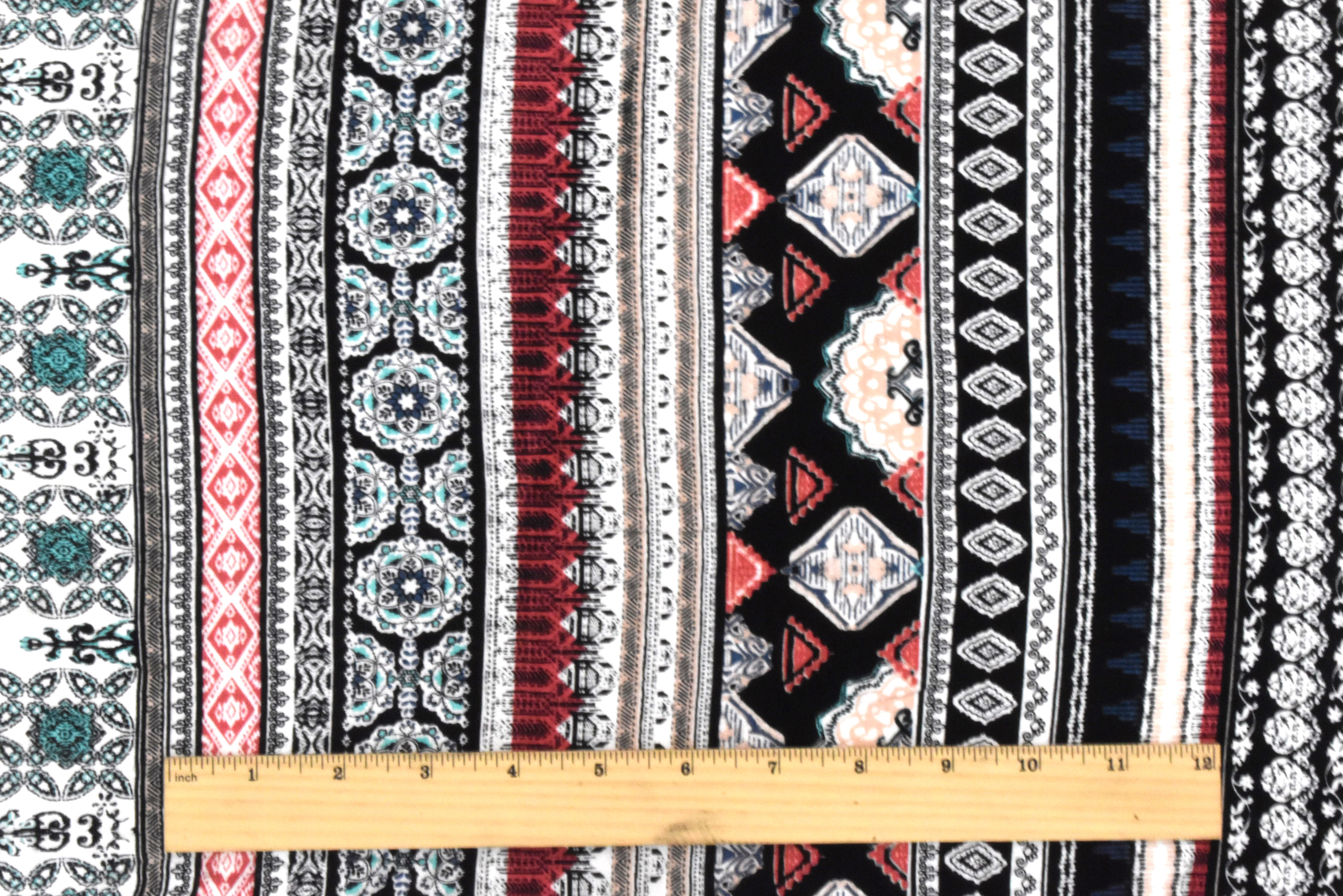 Red-Multi Striped Mixed Pattern Print Slub Rayon Stretch Jersey Knit Fabric