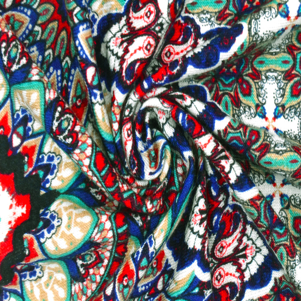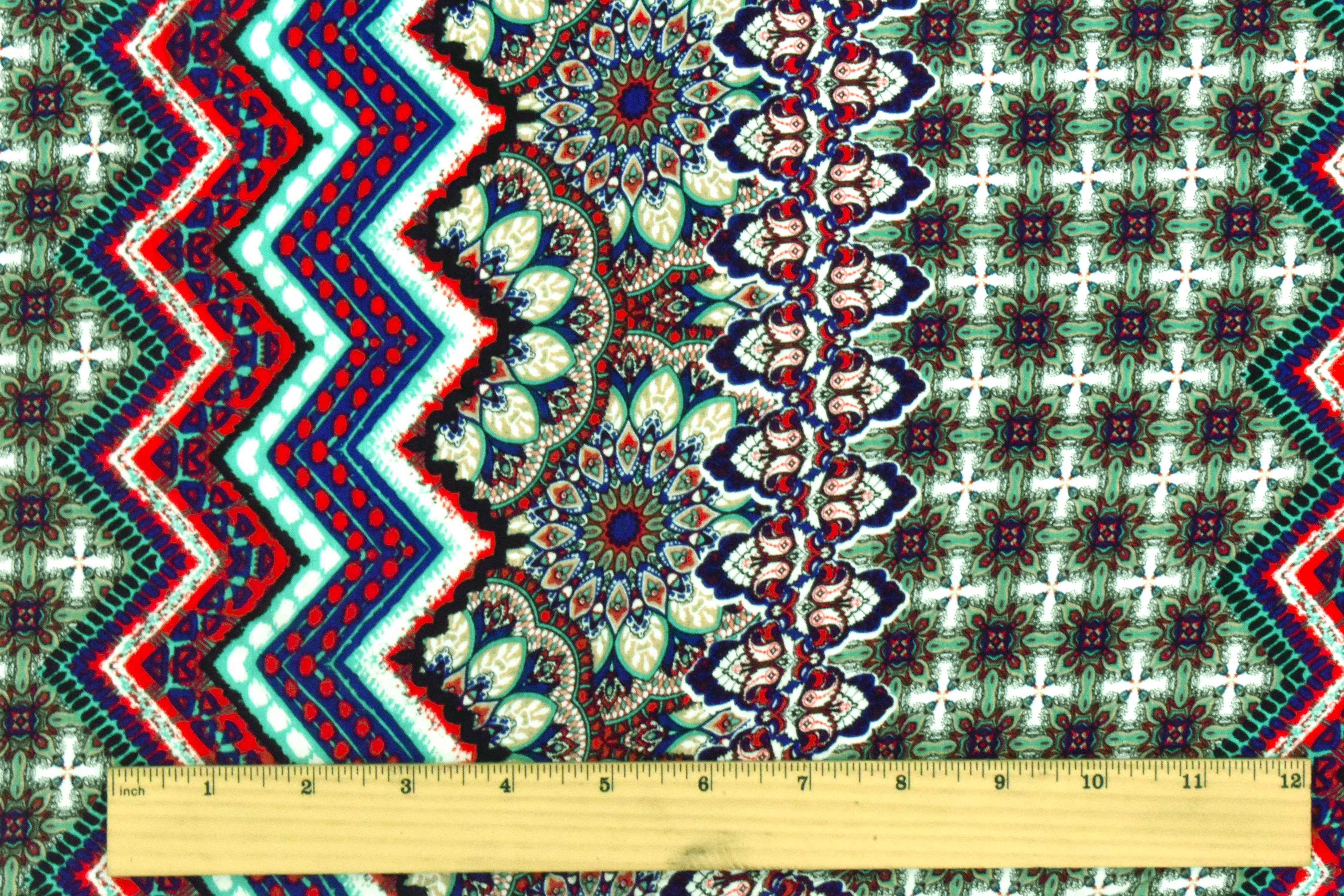 Teal-Multi Chevron Moroccan Print Stretch Rayon Stretch Jersey Knit Fabric