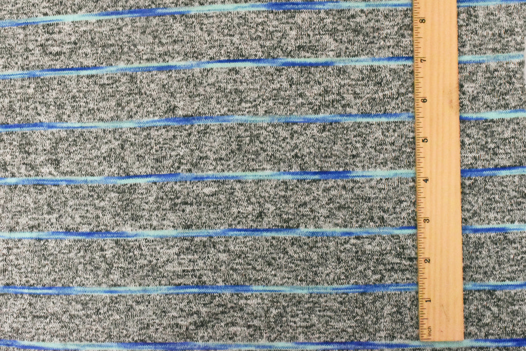 Aqua-Black-Multi Stripe Texture Stretch Jersey Knit Fabric