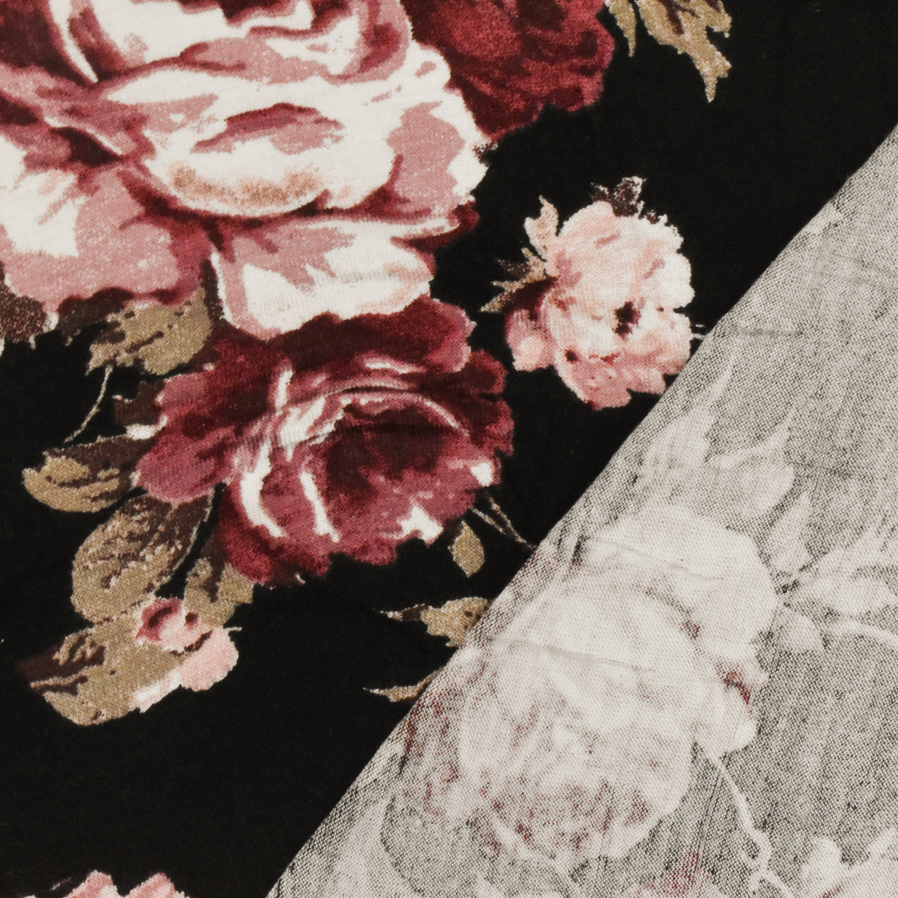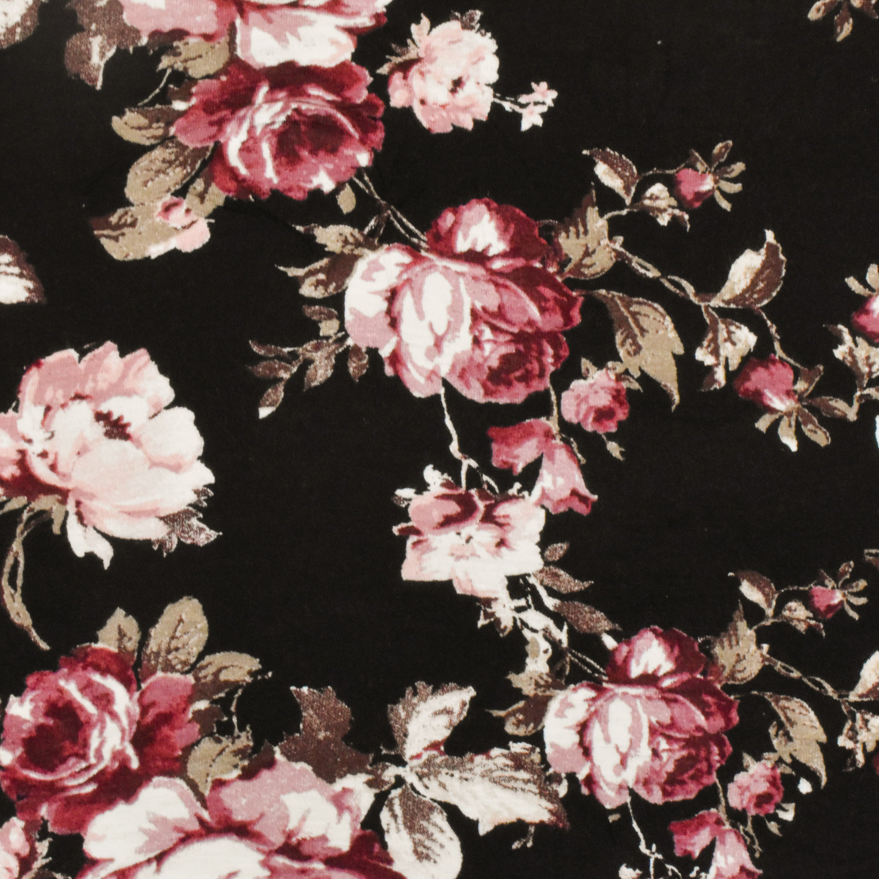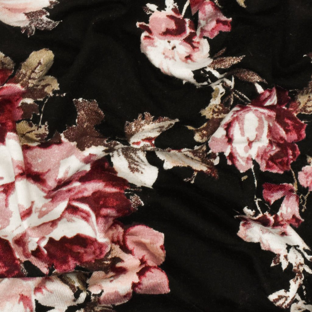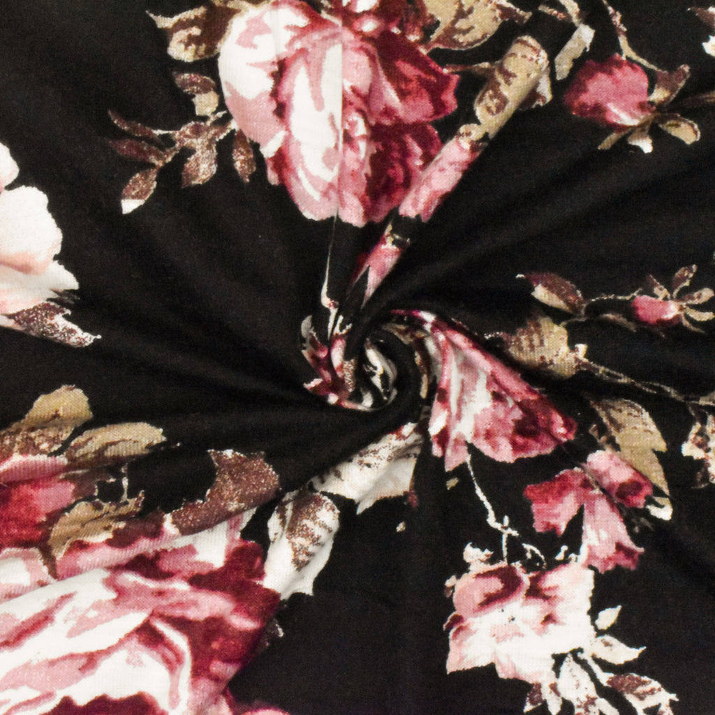 Dark Maroon-Black-Multi Floral Printed Stretch Rayon Jersey Knit Fabric